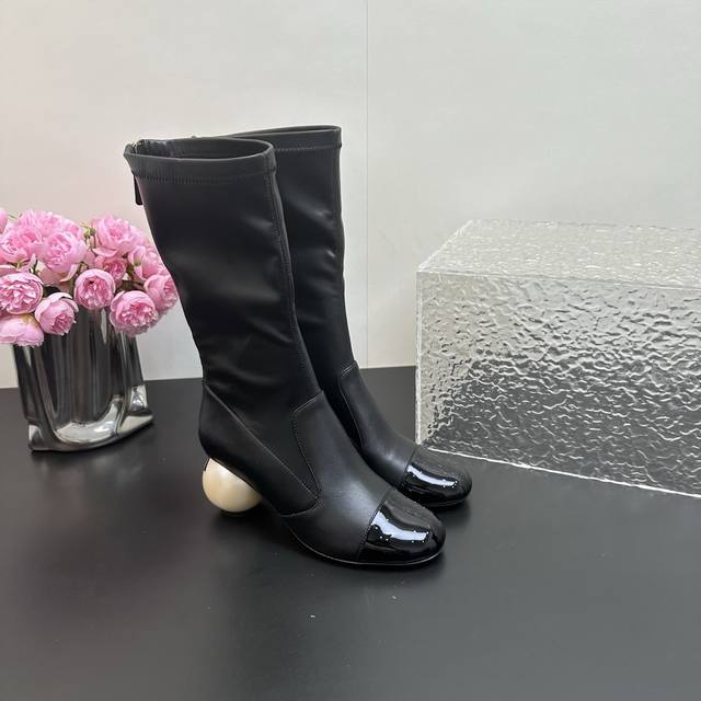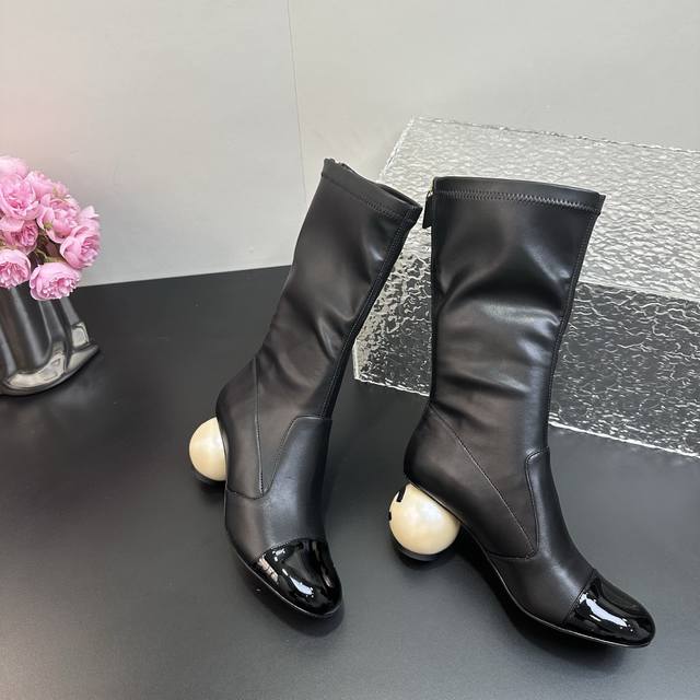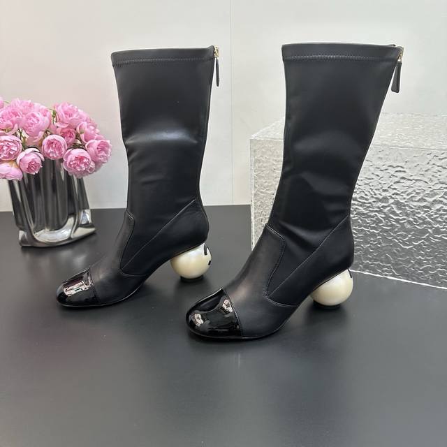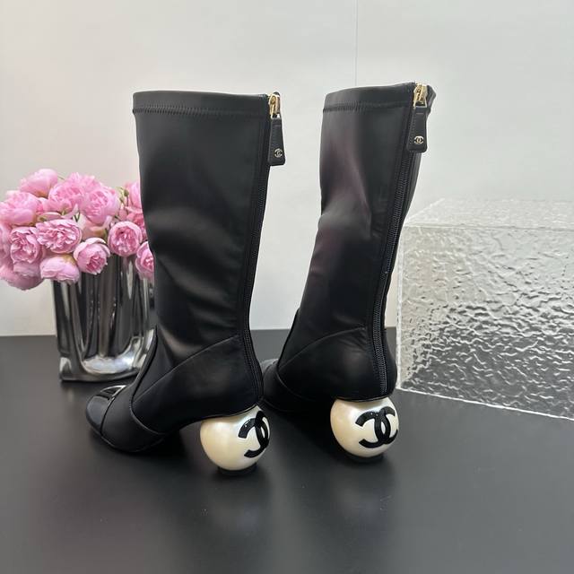 high-heeled boots made a stunning debut on the Milan Fashion Week runway, quickly becoming a dream boot for trendsetters. The classic double C logo combined with the giant pearl heel design is simple yet sophisticated, showcasing the brand's style and making every photo a masterpiece. The giant pearl heel is a stroke of genius, breaking with convention and adding a touch of luxury and romance to the overall look. The