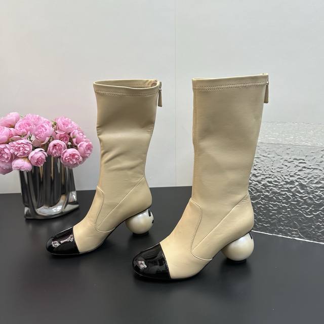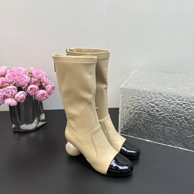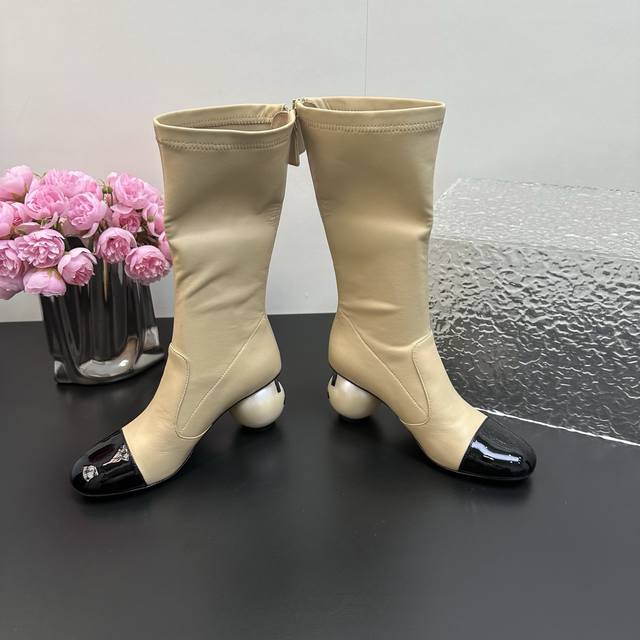 high-heeled boots made a stunning debut on the Milan Fashion Week runway, quickly becoming a dream boot for trendsetters. The classic double C logo combined with the giant pearl heel design is simple yet sophisticated, showcasing the brand's style and making every photo a masterpiece. The giant pearl heel is a stroke of genius, breaking with convention and adding a touch of luxury and romance to the overall look. The