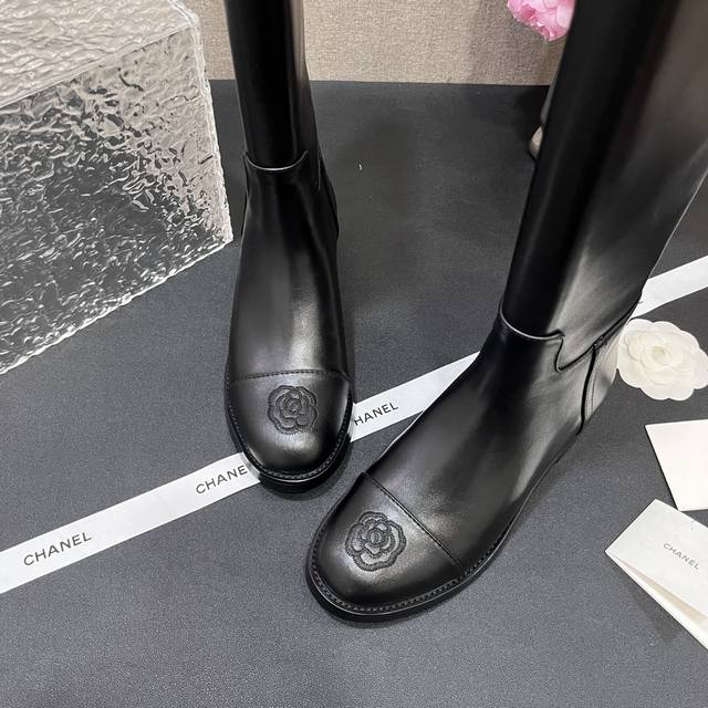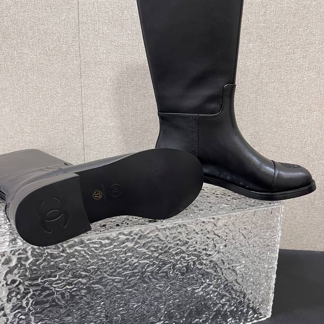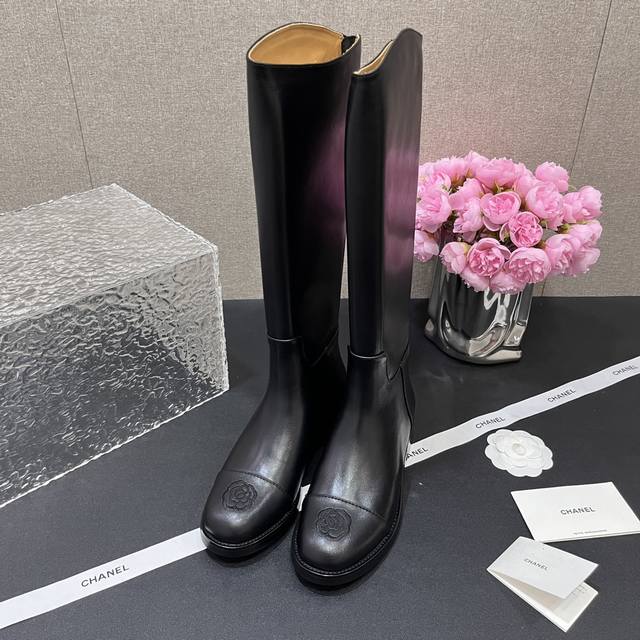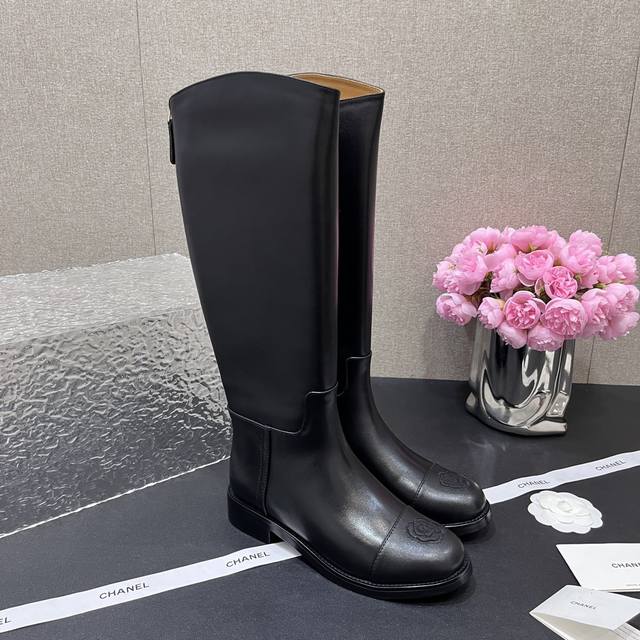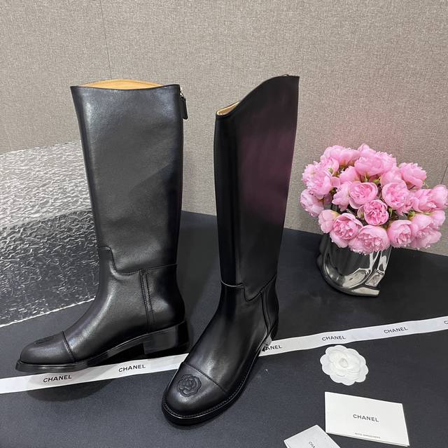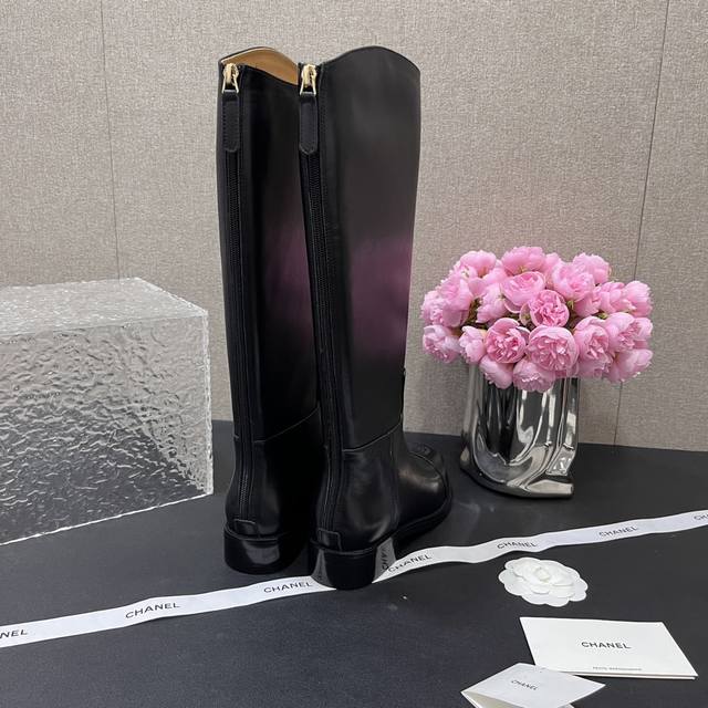 Chanel Fall/Winter Lambskin High Boots with Back Zipper Rider Boots. The design is a basic Chanel Dr. Martens style, sleek and stylish. The upper is made of super soft cowhide, offering a comfortable feel against the skin, with a structured and full silhouette, exuding a cool and confident vibe! The lining is soft, water-dyed lambskin! Original rubber outsole. Exclusive top-quality product, sizes 35-39. 40 custom-made.