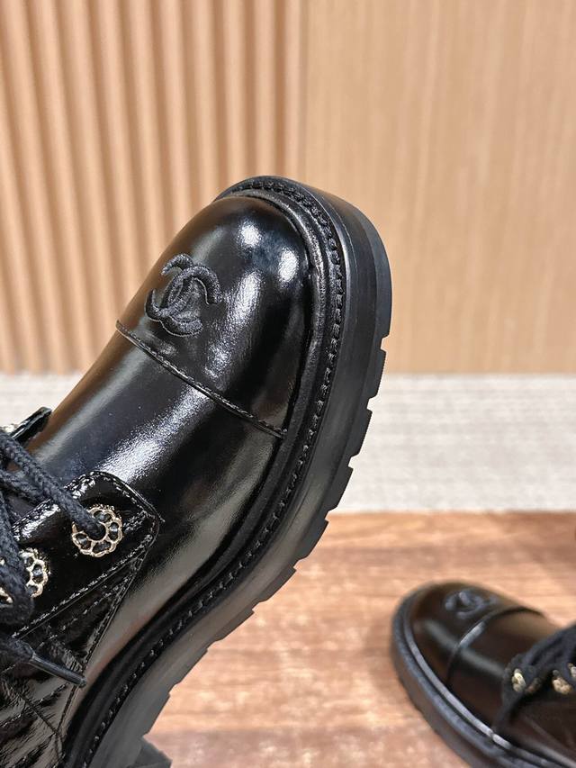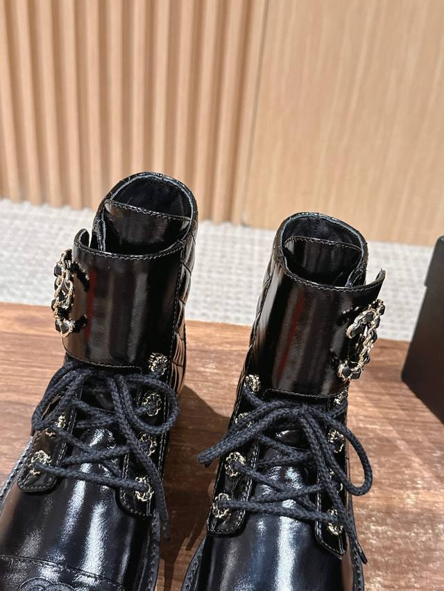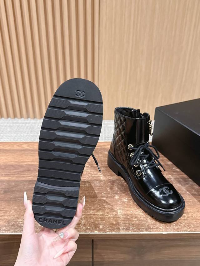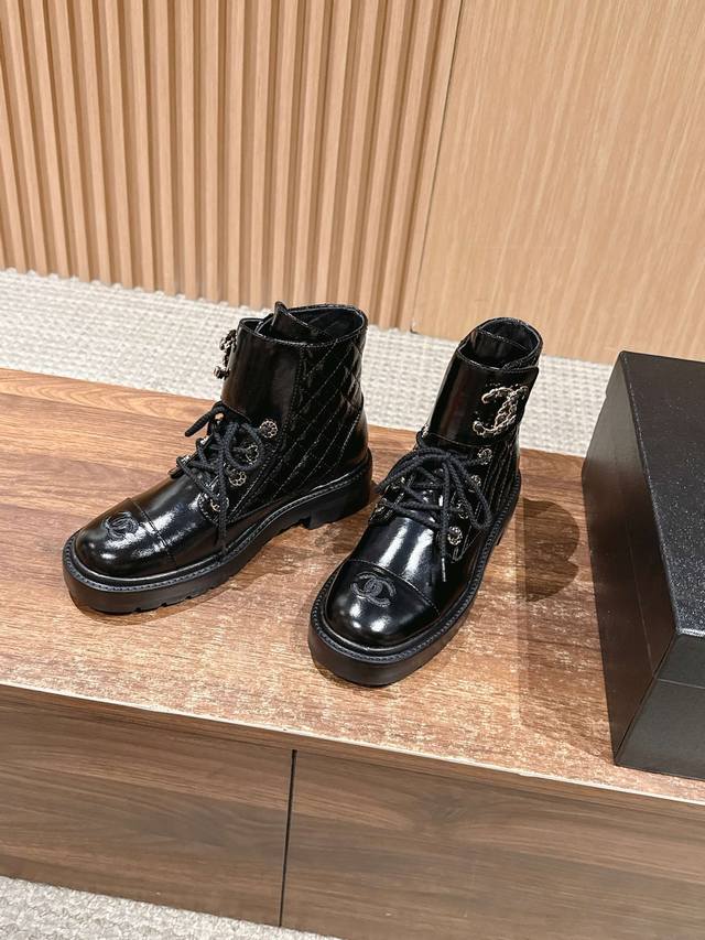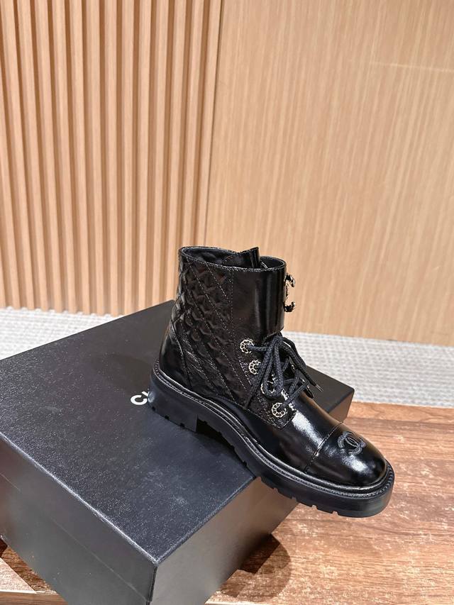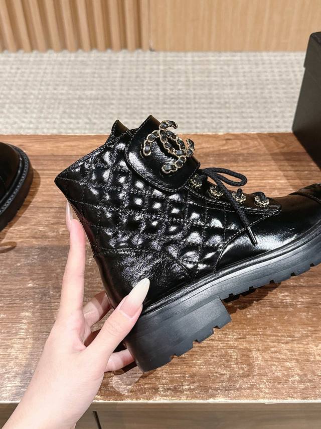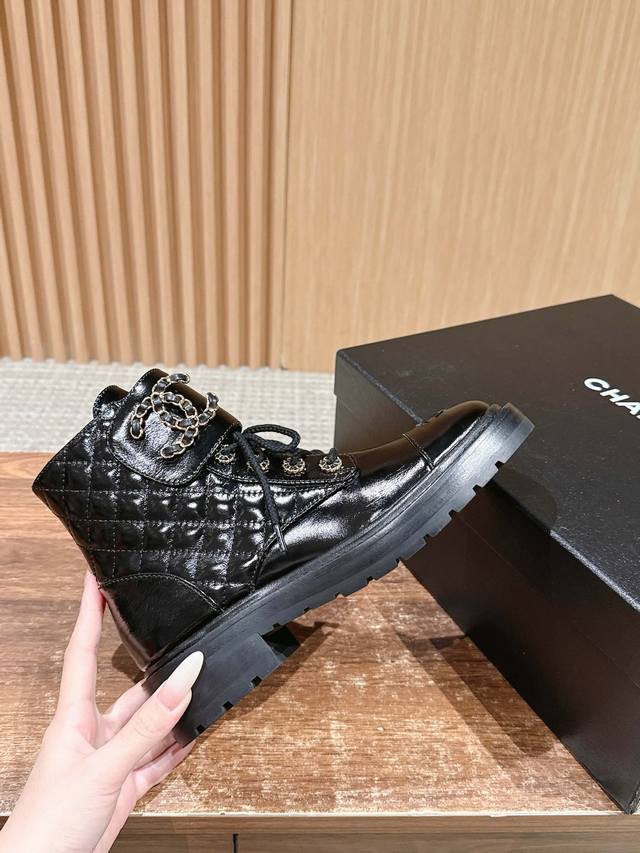 Chanel Fall/Winter New Double C Buckle Chain Quilted Embroidered Platform Ankle Boots - Hot Girl Style! Super Leg-Lengthening, Highly Recommended! Made with a unique blend of lambskin and other lambskin materials. Exclusive molded TPU double C anti-slip outsole. Sizes: 35-40. Size 40 is custom-made and non-refundable.