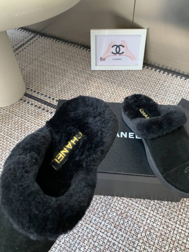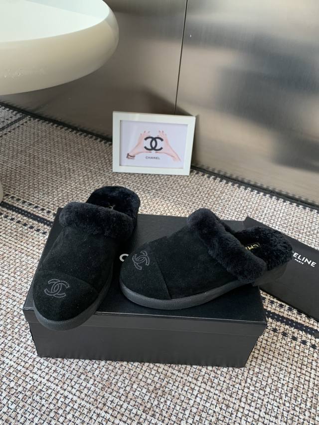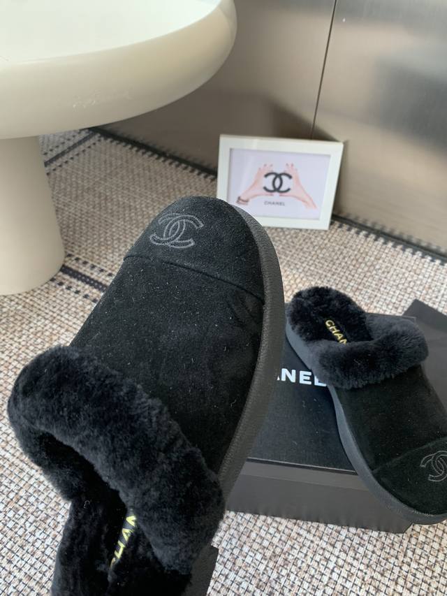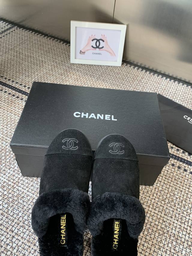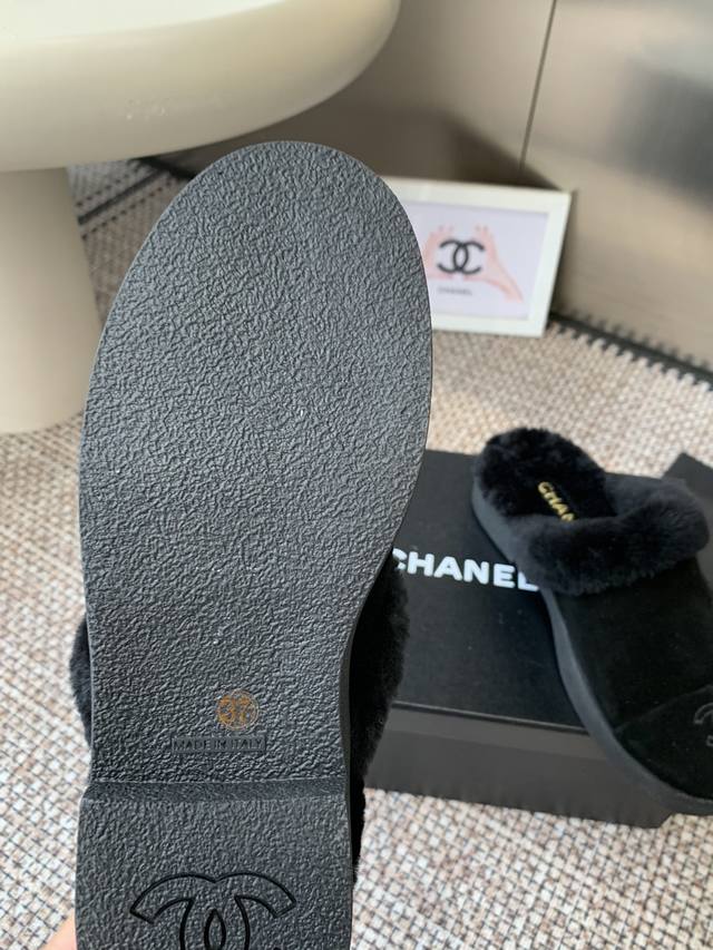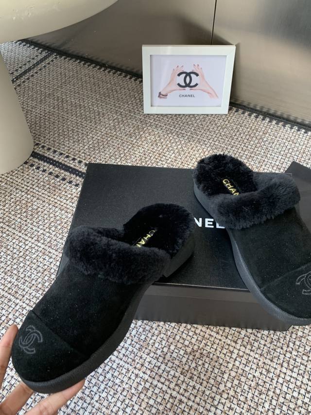 Chanel Fall/Winter New Style Furry Half-Slippers, High-Quality, Synchronized with Xiaohongshu, Latest Color Scheme, Popular Chanel Style, Hot Selling, Fashionable Newest Furry Boots, Super Versatile, Warm Sole, Cow Suede Leather Upper, Imported Wool Lining, Original Rubber Outsole. Sizes: 35-40 40 41. Custom Made.