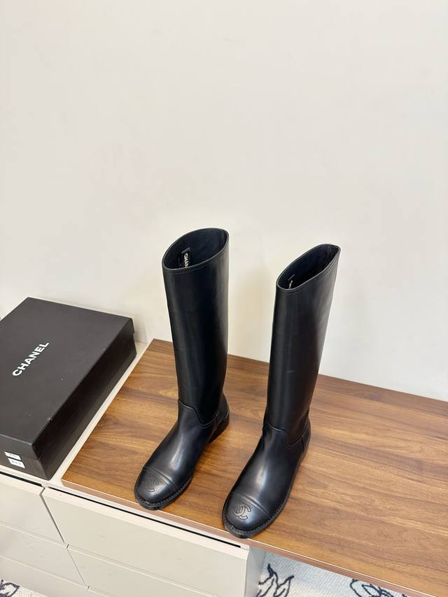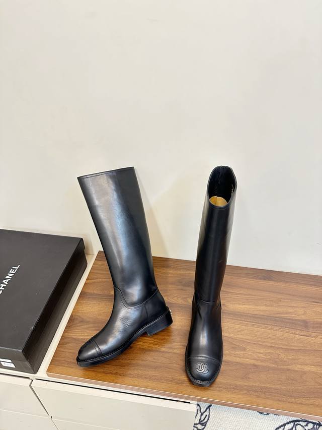Chanel Fall/Winter New Style Rider Boots (Long Boots) These riding boots are truly a symbol of chic and style. The double C embroidered logo on the toe adds a touch of understated luxury! Simple, fashionable, individualistic, and sophisticated! The natural, flowing beauty has a timeless charm, perfect for showing off long legs even in winter! Upper: Calfskin Lining: Cowhide Heel Height: 3cm Sizes: 35-39, 40, 41 (custom orders are non-refundable and non-exchangeable) Sole: Thick Italian genuine leather sole
