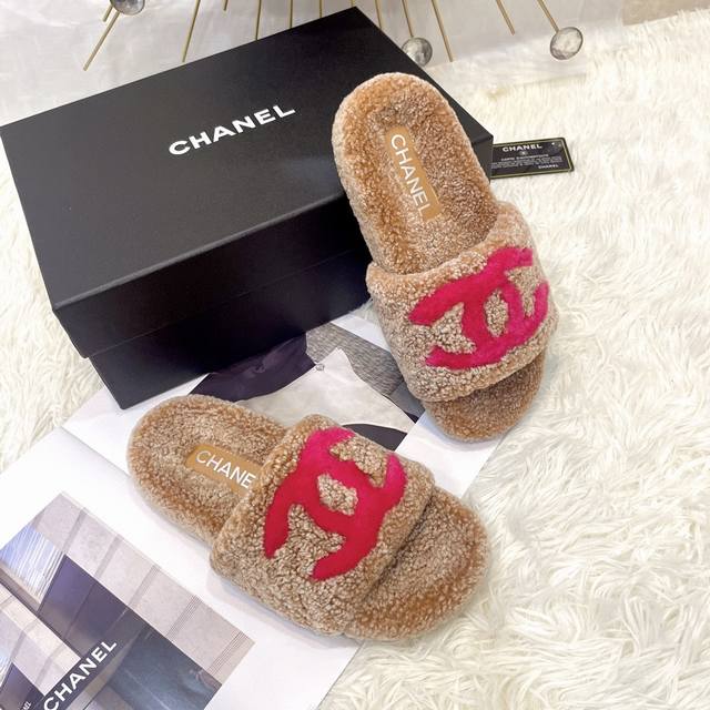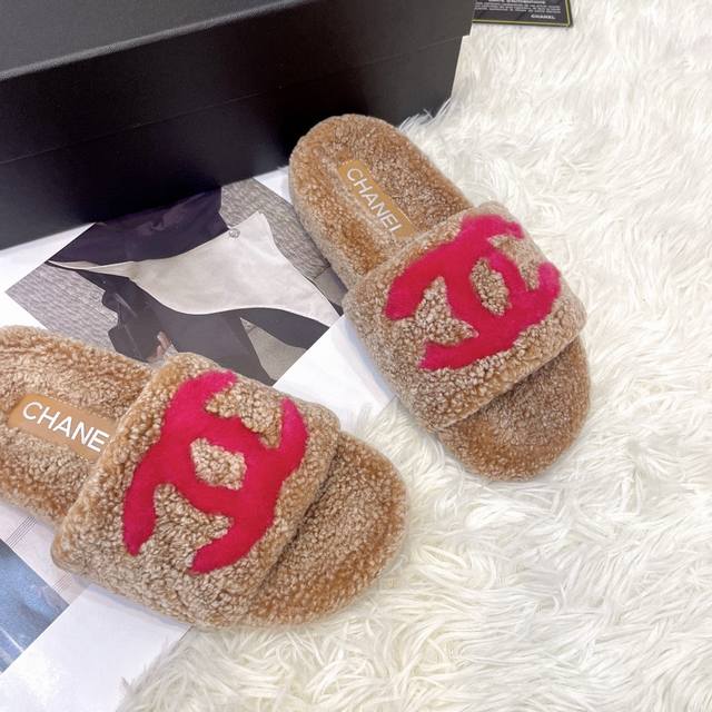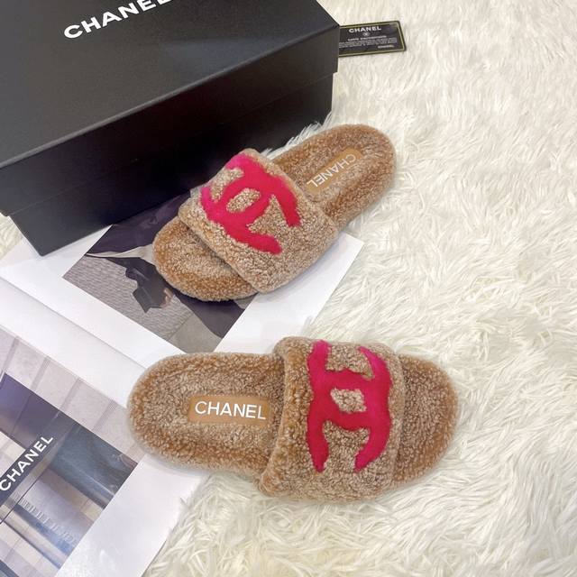 Chanel fluffy slippers with dyed finish. Early autumn casual fluffy slippers from the double C series. Exclusive molded outsole with C# logo. Casual, versatile, and stylish. The fine details determine the exquisite quality; these are classic slippers that grow on you over time. A timeless classic, embroidered with lamb's wool. Lining: Lambswool. Outsole: Non-slip. Sizes: 35-39. Size 40 is custom-made and non-refundable.