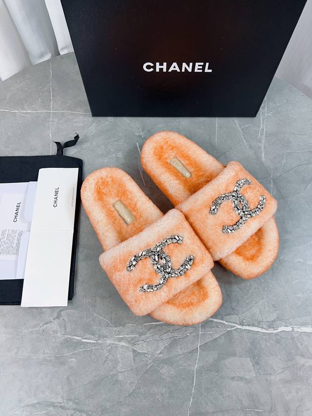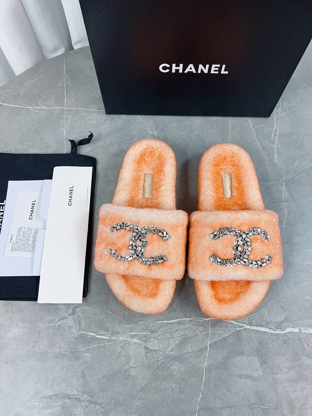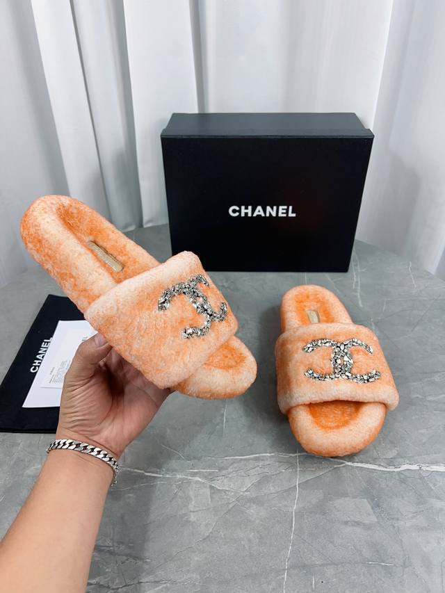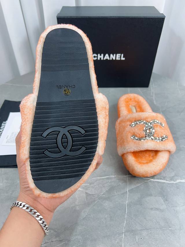 Chanel Hot Selling Item! Chanel Platform Furry Slippers - Wool Slippers - 3C Autumn/Winter Collection Hot New Arrival! This season's hottest Chanel slippers! Upper: Original Wool Lining: Mixed Wool Outsole: Original Mold Outsole Sizes: 35-39 Sizes 40 and 41: Custom orders are non-refundable and non-exchangeable.