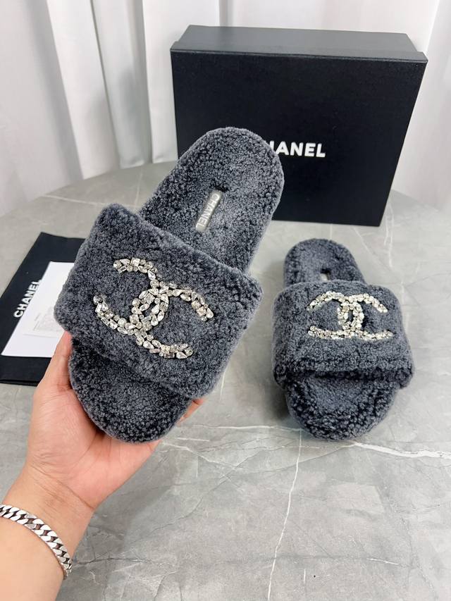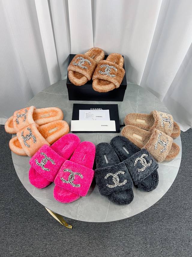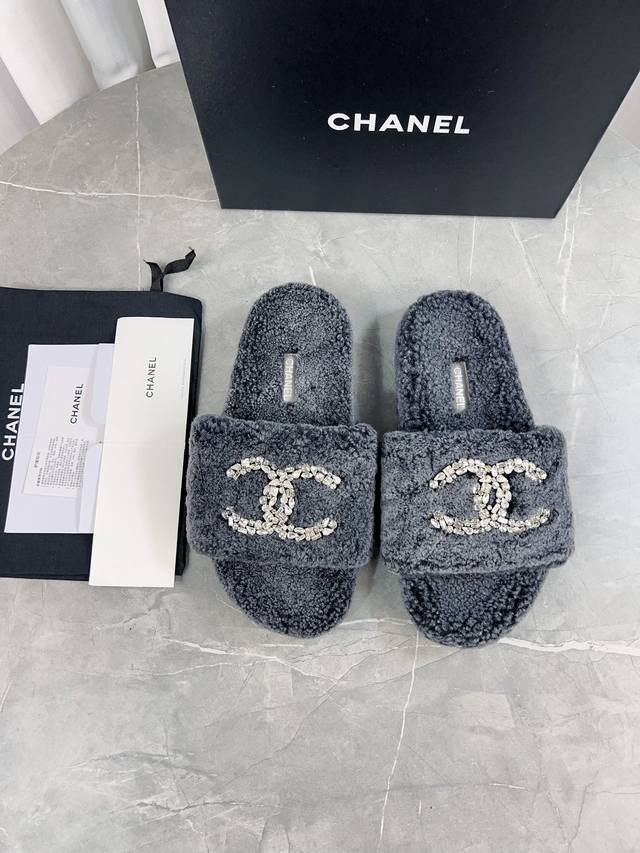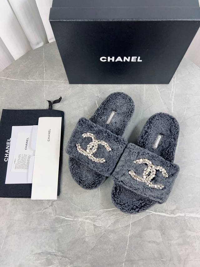 Chanel Hot Selling Item! Chanel Platform Furry Slippers - Wool Slippers - 3C Autumn/Winter Collection Hot New Arrival! This season's hottest Chanel slippers! Upper: Original Wool Lining: Mixed Wool Outsole: Original Mold Outsole Sizes: 35-39 Sizes 40 and 41: Custom orders are non-refundable and non-exchangeable.