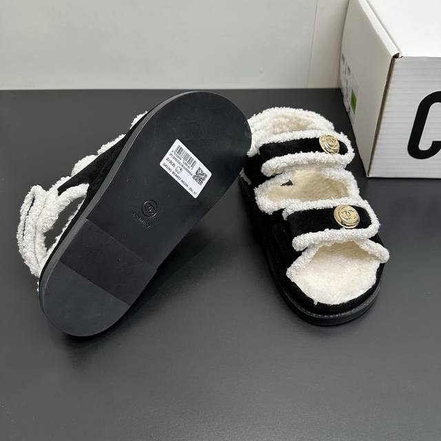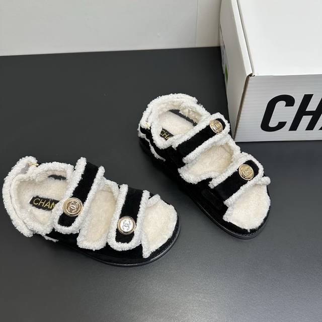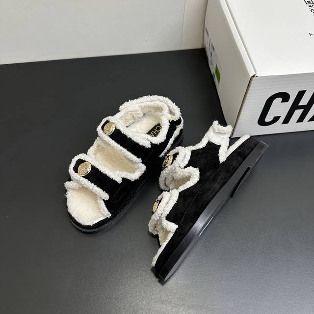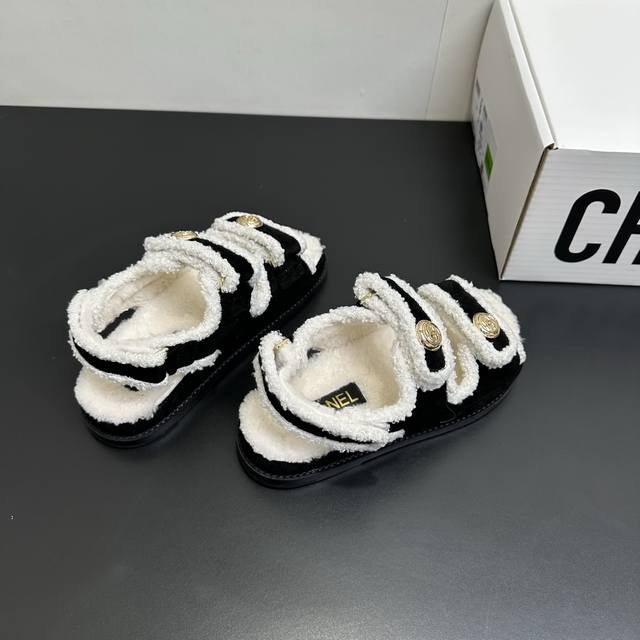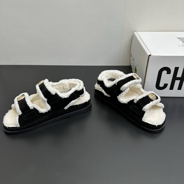 Chanel Mini Sandals - Sold Out at Boutiques, 2025 SS Bestselling Velcro Beach Sandals with Wool Lining. I buy Chanel Velcro sandals every year; they're a versatile must-have for any outfit. This winter, they're a must-have! Upper: Suede leather, high-quality and delicate. Features: Custom-molded logo hardware. Wool lining, rubber sole. Sizes: 35-39. Sizes 40 and 41 are available upon request.