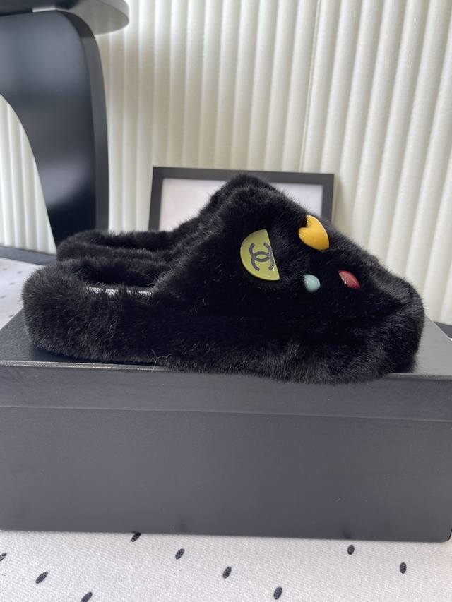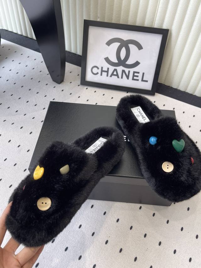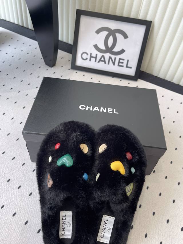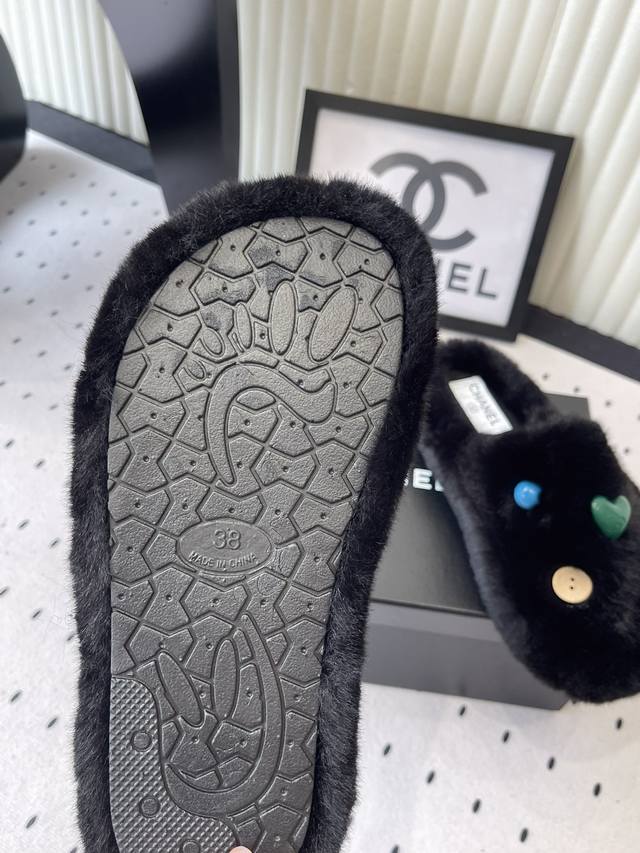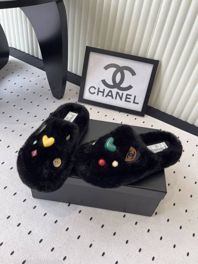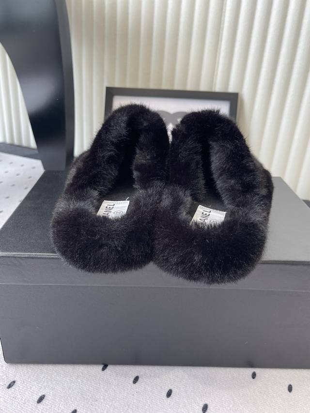 Chanel New Autumn/Winter Furry Slippers - Super Comfortable, Youthful, Versatile, and Elegant. Original Imported One-Piece Fur Upper, Imported Wool Lining, Insole, Italian Rubber Outsole. Sizes: 35-39, 40, 41. Custom Made.