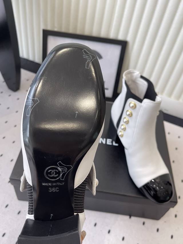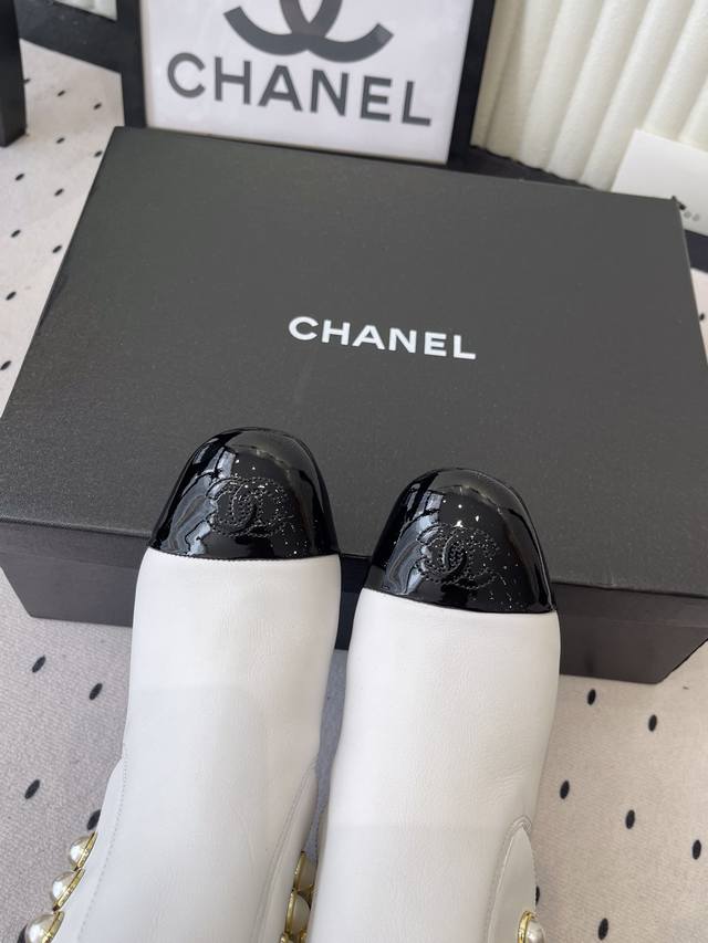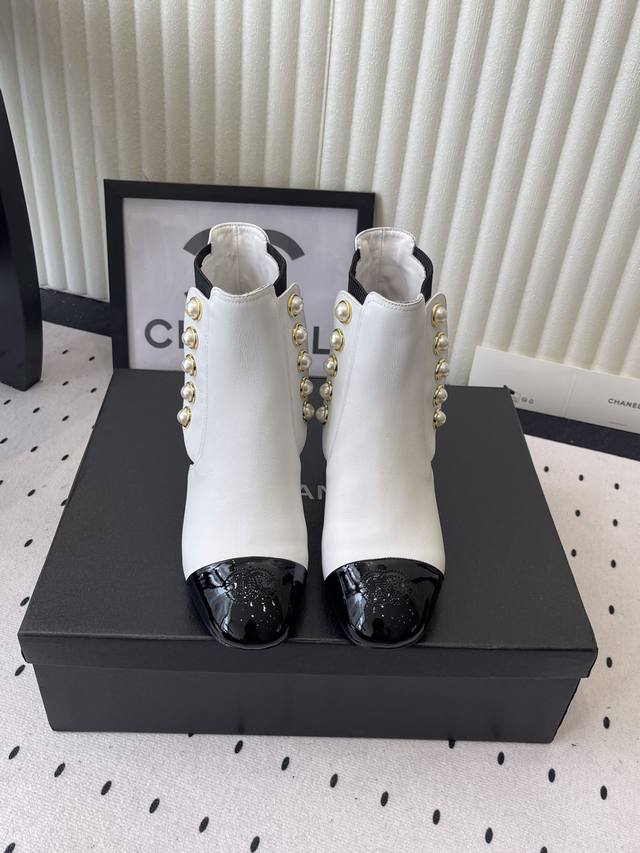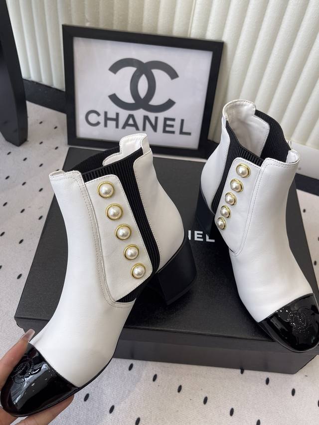 Chanel New Autumn/Winter Motorcycle Boots, a super classic Chanel motorcycle boot. Effortlessly adds height and elongates the legs. Paired with pearls, it's chic and fashionable. Imported top-grain cowhide upper, sheepskin lining, insole. Heel height: 6.5cm. Italian genuine leather outsole. Sizes: 35-39, 40, 41. Custom made.