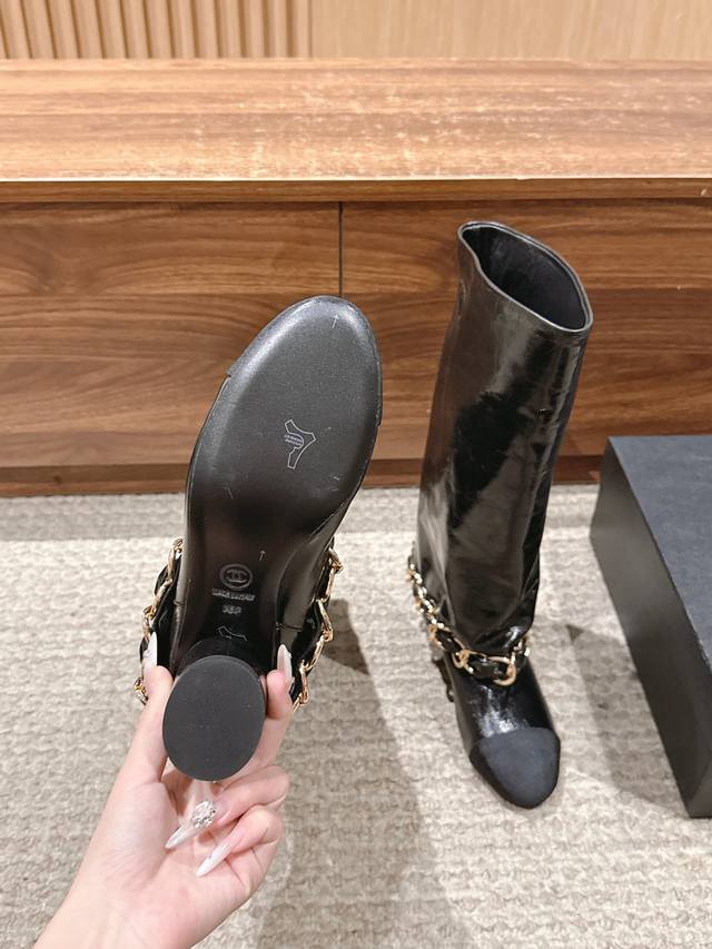 Chanel New Chain Rider Boots DDD A timeless classic, sweet yet cool, perfect for any style. Once you put them on, you won't want to take them off! These boots are very flattering, even for those with thicker calves. They're also very friendly to petite women, elongating the legs and making them look slimmer and taller. The small round toe design is perfectly proportioned. DDD Upper: Cowhide DDD Lining: Sheepskin DDD Outsole: Genuine Leather Outsole DDD Heel Height: 5cm DDD Size: 35-41 40.41 Custom Made DDD