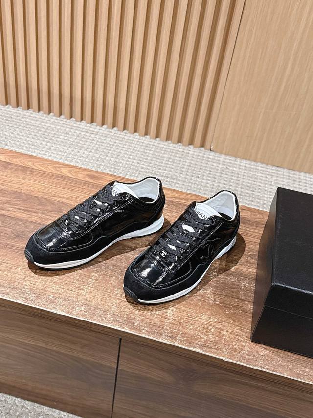 Chanel New Couple's German Training Casual Shoes. The slightly pointed toe makes the feet look slimmer. The combination of calfskin upper and suede material is stylish and very comfortable! Upper: Imported cowhide + pigskin Lining: Imported sheepskin Outsole: TPU original molded rubber sole Sizes: Women's 35-40, Men's 40-45
