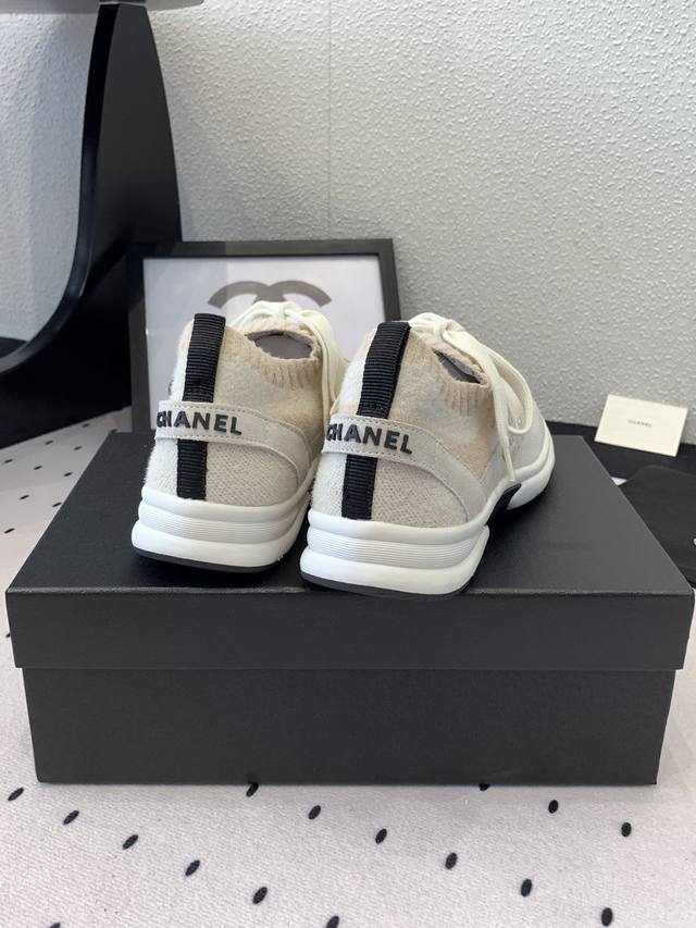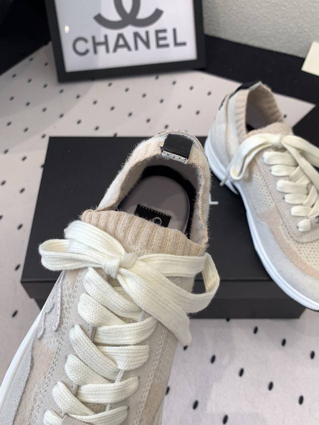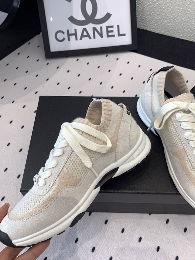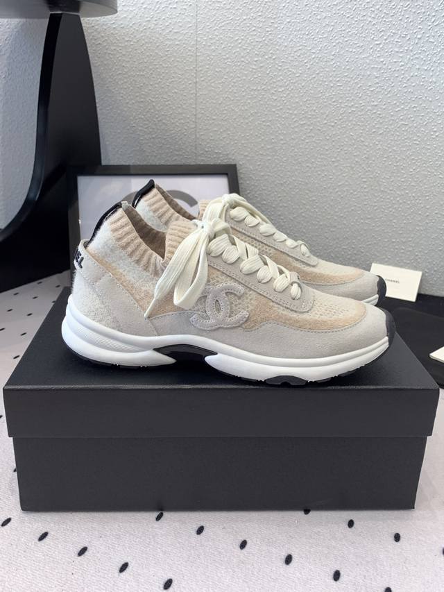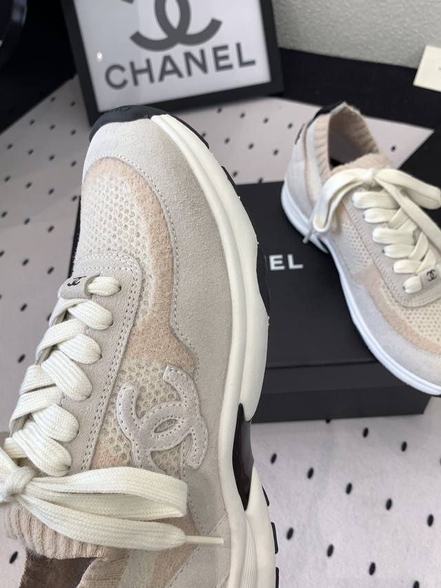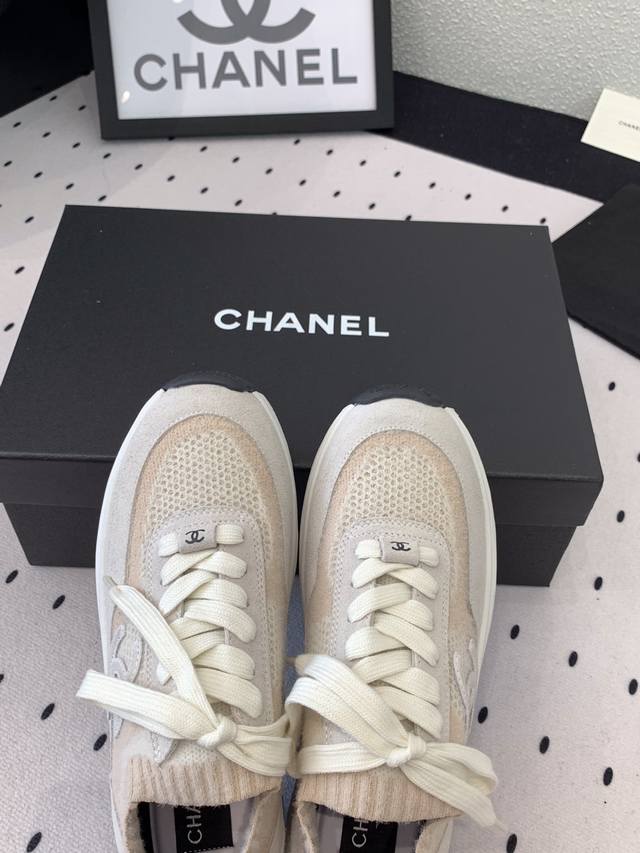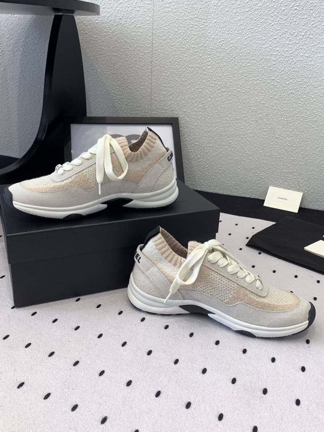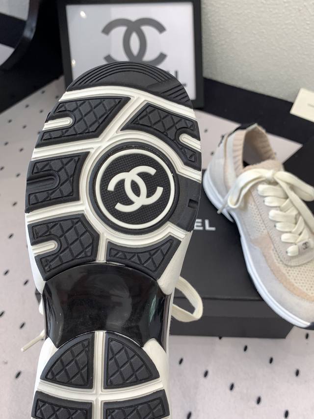 Chanel New Flyknit Sneakers - Original Purchase and Development. Classic design, fresh color scheme, clean and crisp. High-gloss suede + two-tone flyknit fabric. Original mold opening. TPU combination. Two-tone outsole. Size: 35-40.