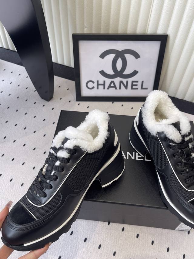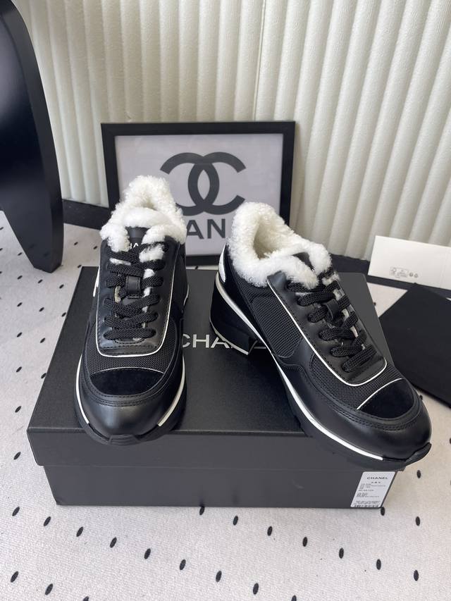 Chanel New High-Heeled Platform Fleece-Lined Sneakers - High-Quality Version Available. This year's most anticipated bestseller, instantly captivating and incredibly stylish. Makes legs look longer. Original imported cowhide leather, breathable mesh upper, original TPU outsole, 6cm heel. Sizes: 35-40, 41 (Custom Made).