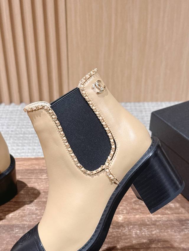 Chanel New Patchwork Chain Chunky Heel Ankle Boots DDD These platform ankle boots have been seen extensively in European and American street style photos and have become a hit on Instagram. The overall smooth lines are consistent with the original, making them incredibly charming. I believe women with good taste will love them. The Chanel*L series never disappoints; a goddess's essential weapon DDD These 2025 new spring and autumn high-heeled genuine leather women's platform Chelsea ankle boots are simply perfect for my aesthetic! Made of high-quality genuine leather, they have a luxurious feel and are incredibly comfortable to the touch. The platform design not only adds height and makes you look slimmer but also provides stability when walking. The simple Chelsea boot style is versatile and fashionable, easily creating different styles whether paired with jeans or a skirt. Wearing these in spring and autumn is both warm and stylish