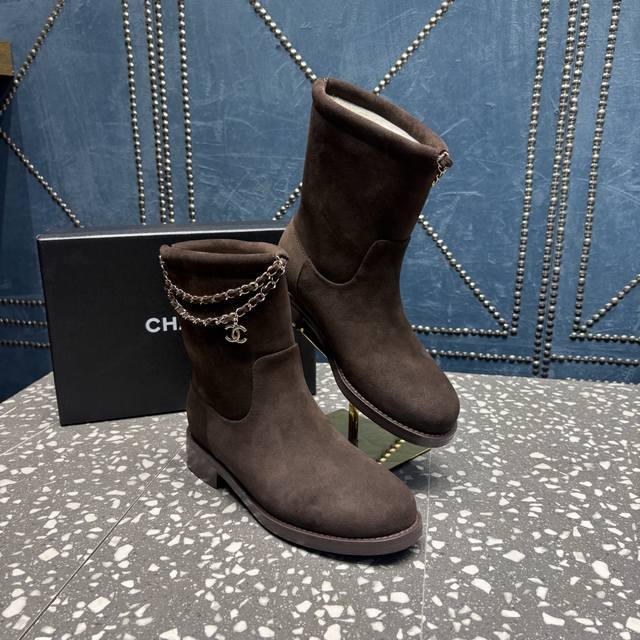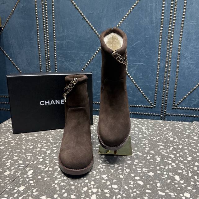 Chanel double C high-heeled fashion boots, material: Chanel-specific cowhide, li