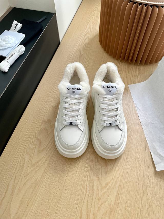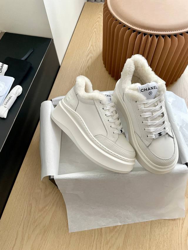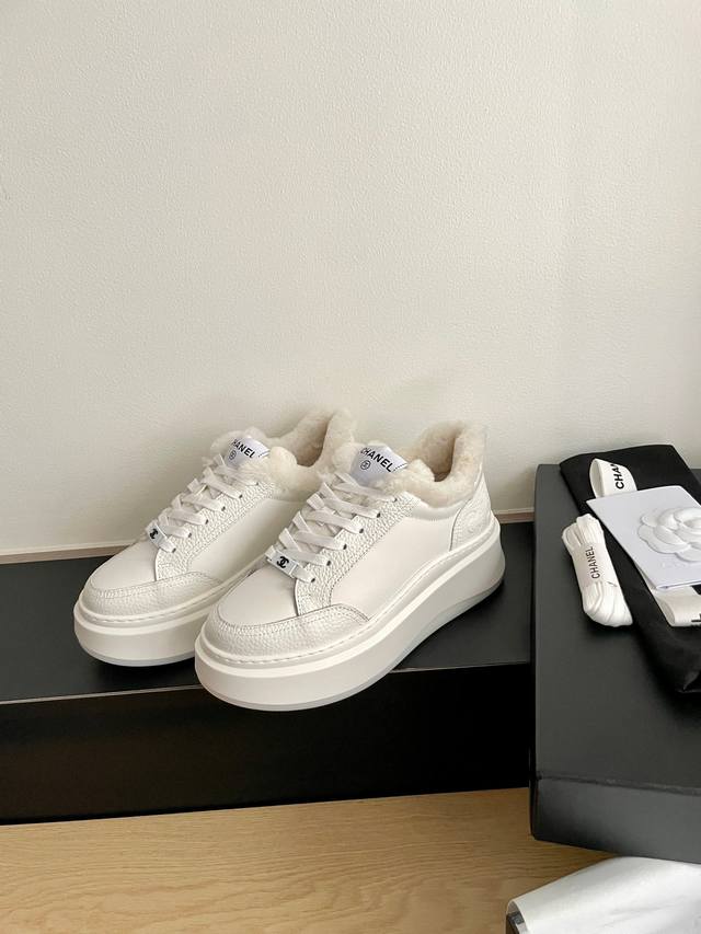 Chanel Panda Color Block Platform Wool-Lined Casual Shoes - Popular with Internet Celebrities and Brands, Latest Runway Collection, 1:1 Original Design. These versatile sneakers may seem ordinary at first glance, but they're incredibly stylish and cool when worn. The heel features a 3D logo, showcasing meticulous details. These casual shoes are lightweight and extremely comfortable, a perfect score for comfort. Insole: Full wool lining. Outsole: Original custom mold outsole. Size: 34-40. Size 40 is custom-made and non-refundable.