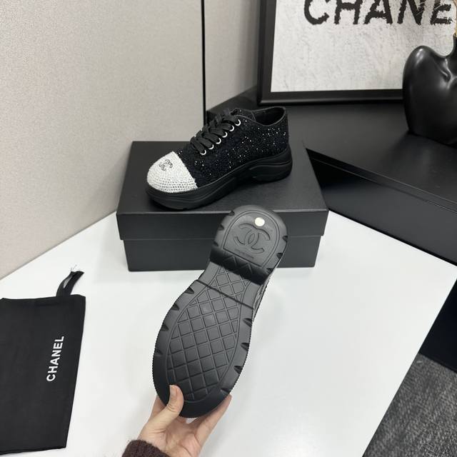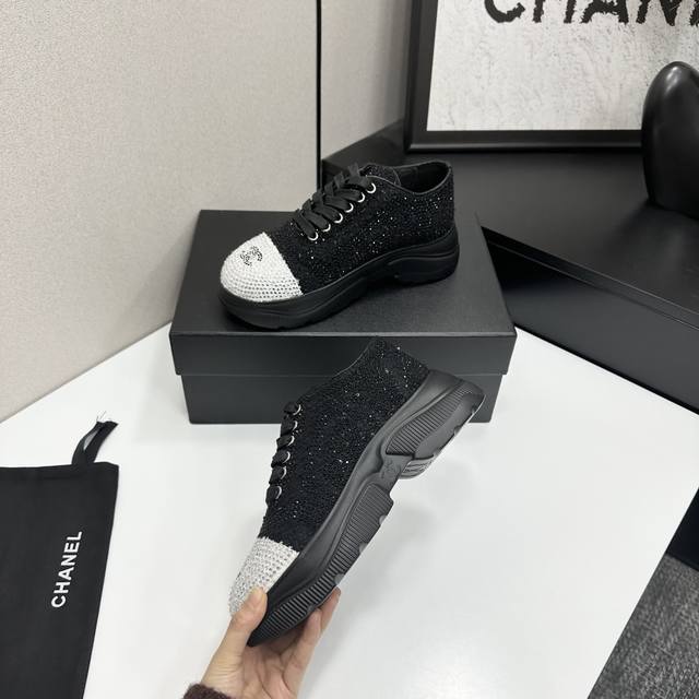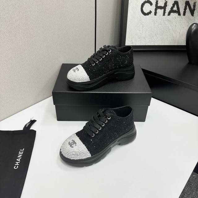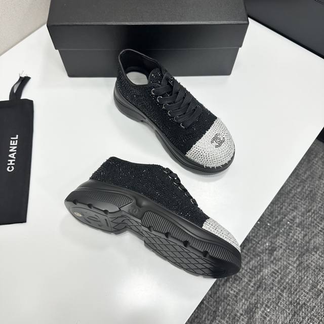 Chanel Panda Shoes! 2025 Top-Tier Casual Sneakers from the Boutique. This classic design features a multi-layered embroidered upper and a stylish, sporty outsole. It incorporates various color elements for a versatile and easy-to-match look, suitable for casual, fashionable, sporty, and outdoor occasions. Materials: Upper: Original imported mesh with rhinestones; Lining: Original sheepskin lining + mesh; Outsole: Original TPU combination outsole. Boutique packaging, full set, women's sizes 35-41.