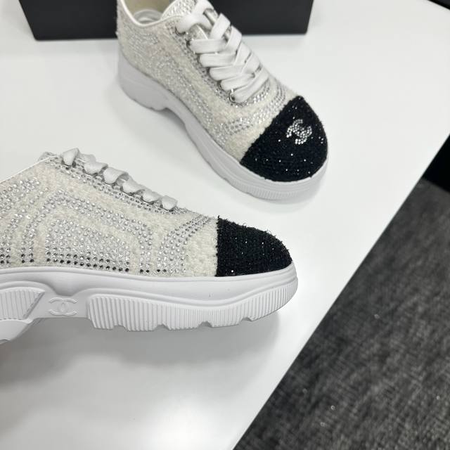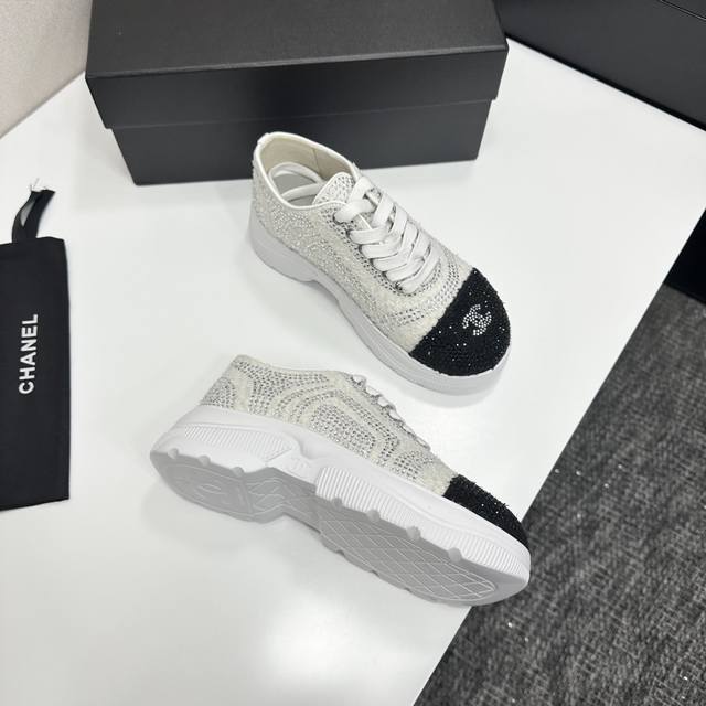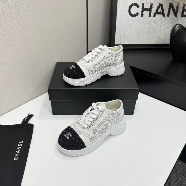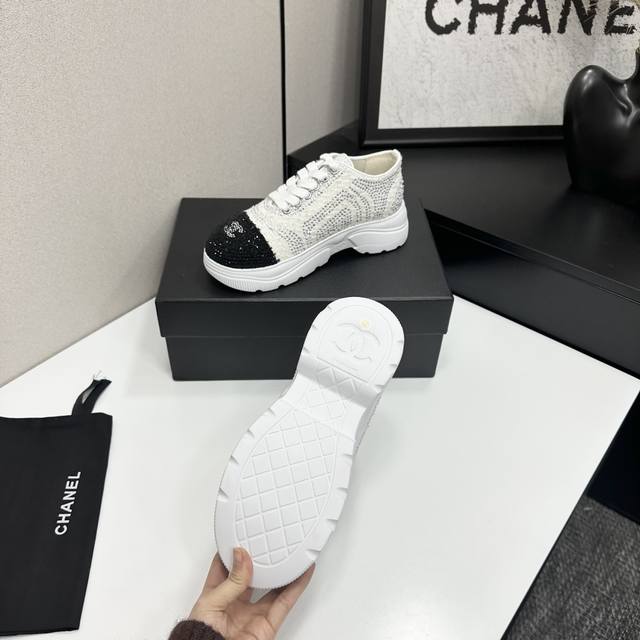 Chanel Panda Shoes! 2025 Top-Tier Casual Sneakers from the Boutique. This classic design features a multi-layered embroidered upper and a stylish, sporty outsole. It incorporates various color elements for a versatile and easy-to-match look, suitable for casual, fashionable, sporty, and outdoor occasions. Materials: Upper: Original imported mesh with rhinestones; Lining: Original sheepskin lining + mesh; Outsole: Original TPU combination outsole. Boutique packaging, full set, women's sizes 35-41.