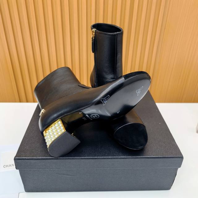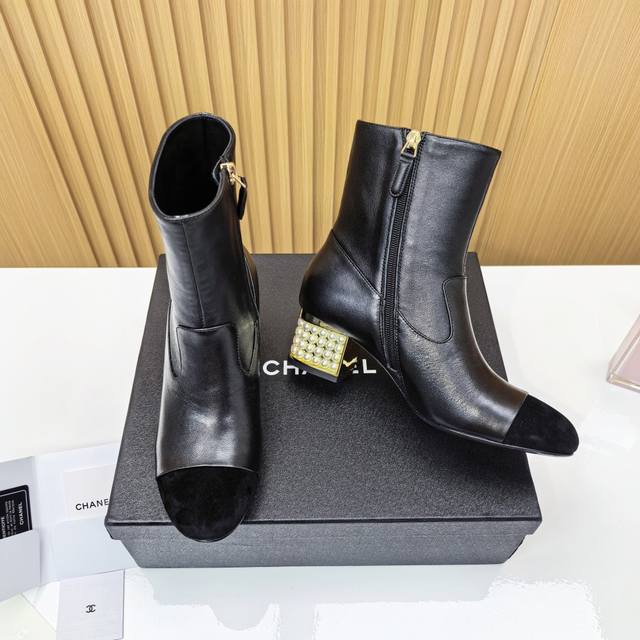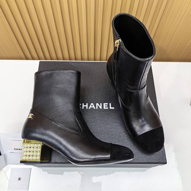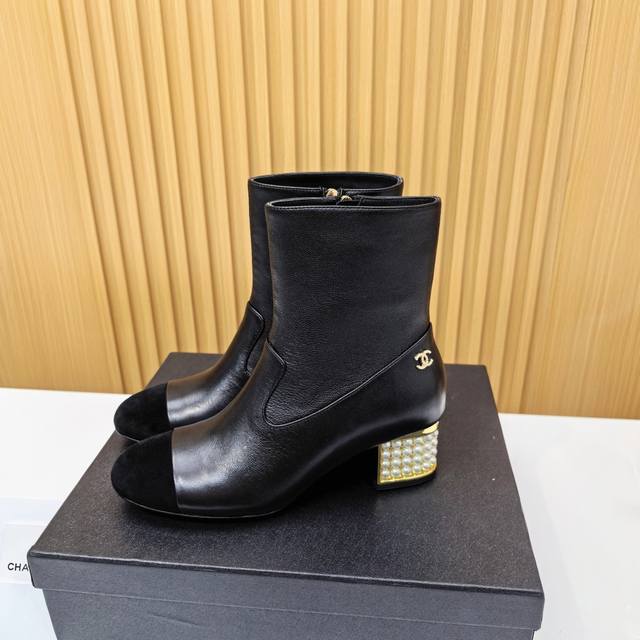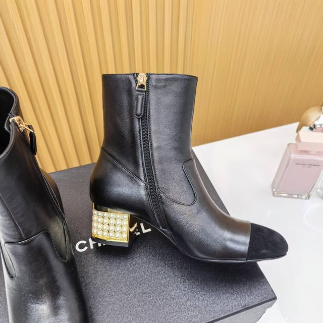 Chanel Pearl Heel Ankle Boots