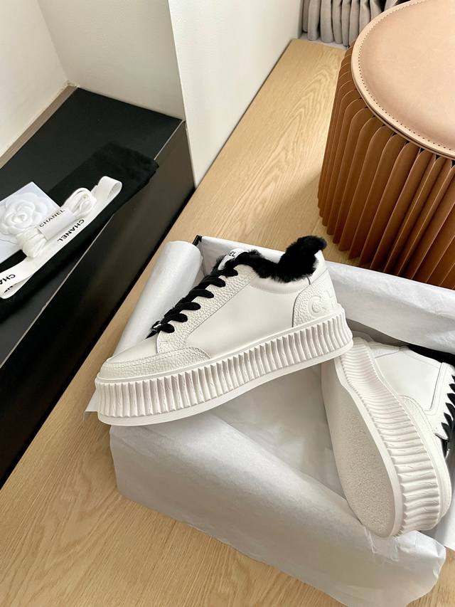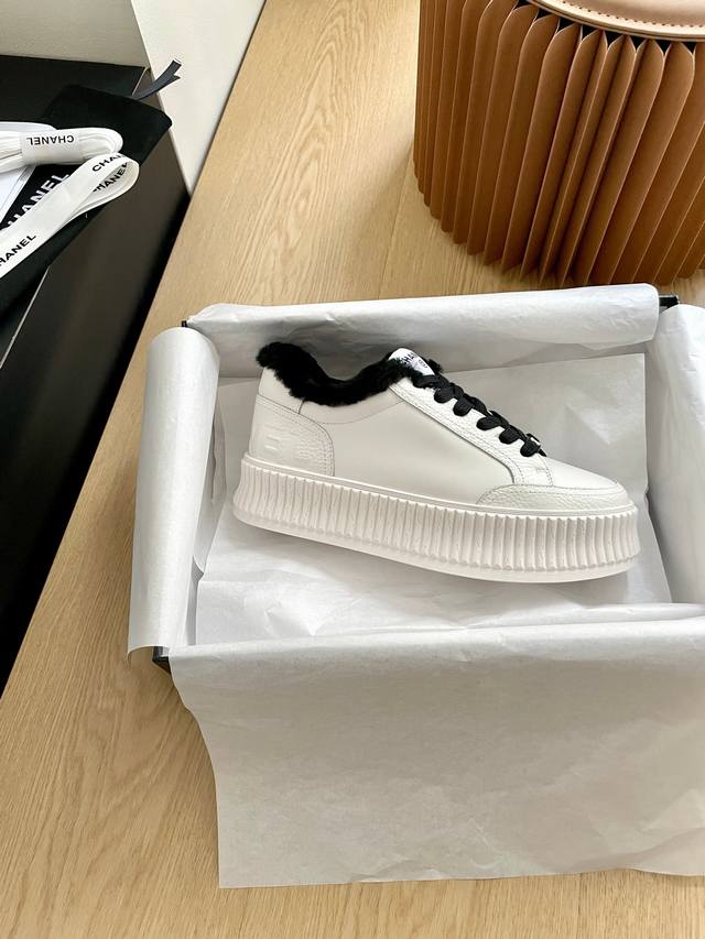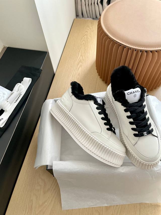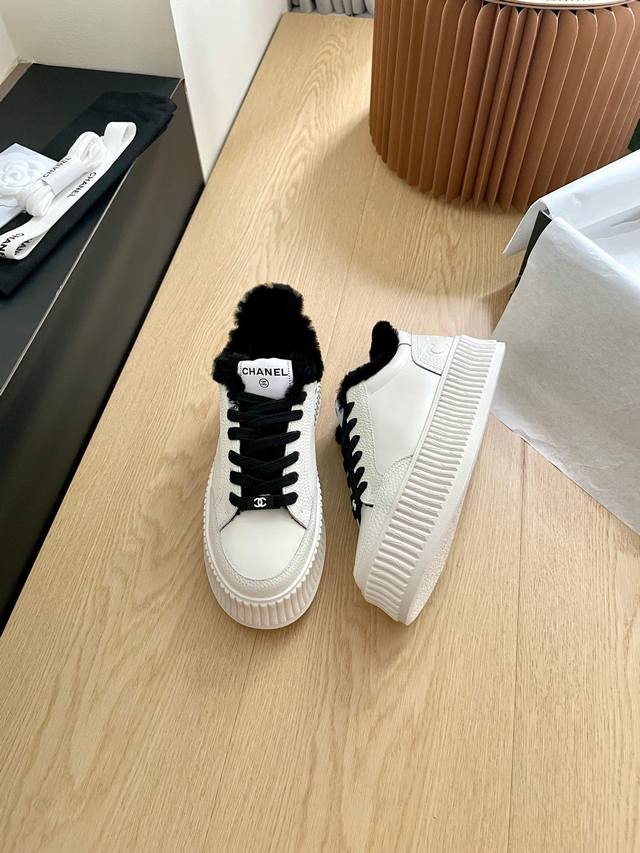 Chanel Platform Panda Shoes with Wool Lining DDD This is a selected sneaker, the third generation platform version. The details have been continuously optimized by the boutiques, making it even more beautiful with each update. A sold-out item! DDD Made with premium imported cowhide, combining grained and pebbled calfskin, full of detail and texture. Full wool lining, 4.5cm thick sole. DDD The logo on the heel has been changed to an embossed design, making it more minimalist and stylish. DDD Absolutely gorgeous, ladies, get yours! DDD Top-tier quality, size 35-40. DDD