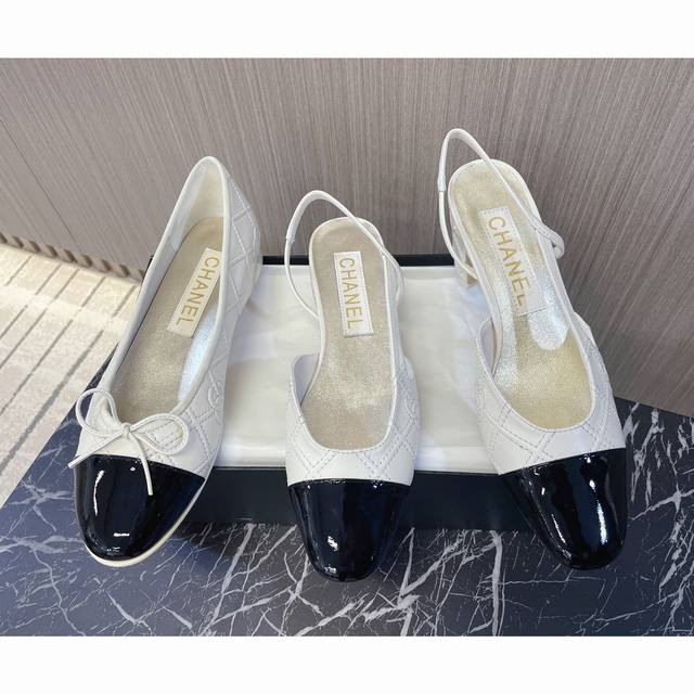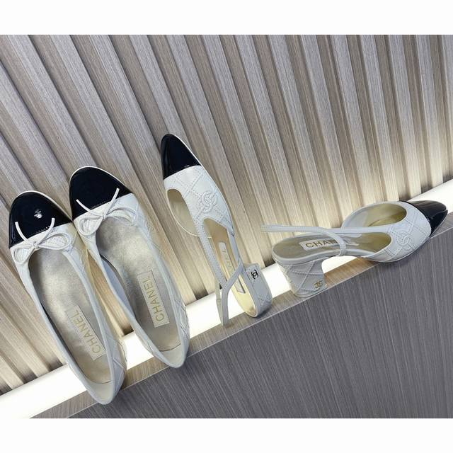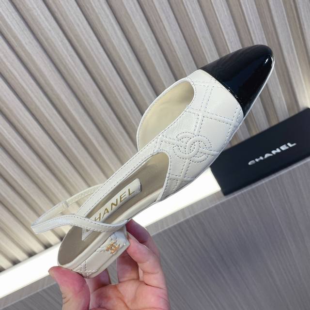 Chanel quilted ballet flats, open-toe sandals~~ DDD Fashion runway style DDD Color blocking, latest embroidered quilted logo, 1.5cm flat heel, 6.5cm chunky heel with small logo embellishment, embodying fashion! A versatile style that looks good with anything! DDD Original custom-made natural wood-colored genuine leather outsole, top-grain cowhide with quilted double C logo, goatskin lining and insole DDD Sizes 35 & 40 true to size with matching packaging DDD Low heel, chunky heel, single shoe DDD