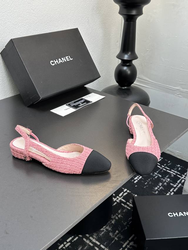 Chanel+L Classic Slingback Chanel-Style Open-Back Sandals Just As Coco Chanel Once Said: Fashion Fades, But Style Is Eternal! These Open-Back Sandals Are The Epitome Of Chanel's Timeless Elegance. Featuring A Two-Tone Color Scheme And A Sleek, Minimalist Design,