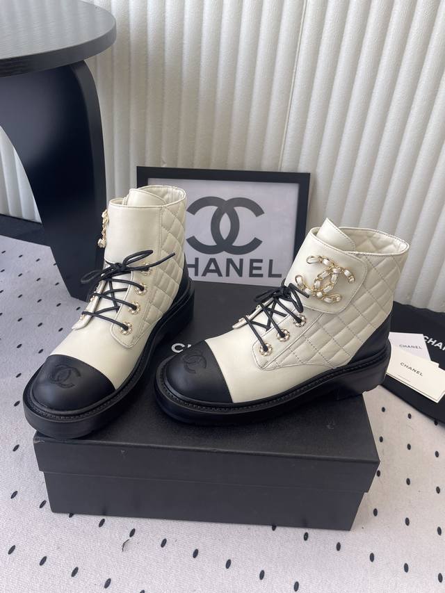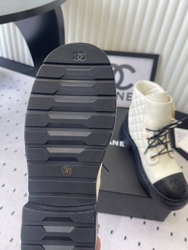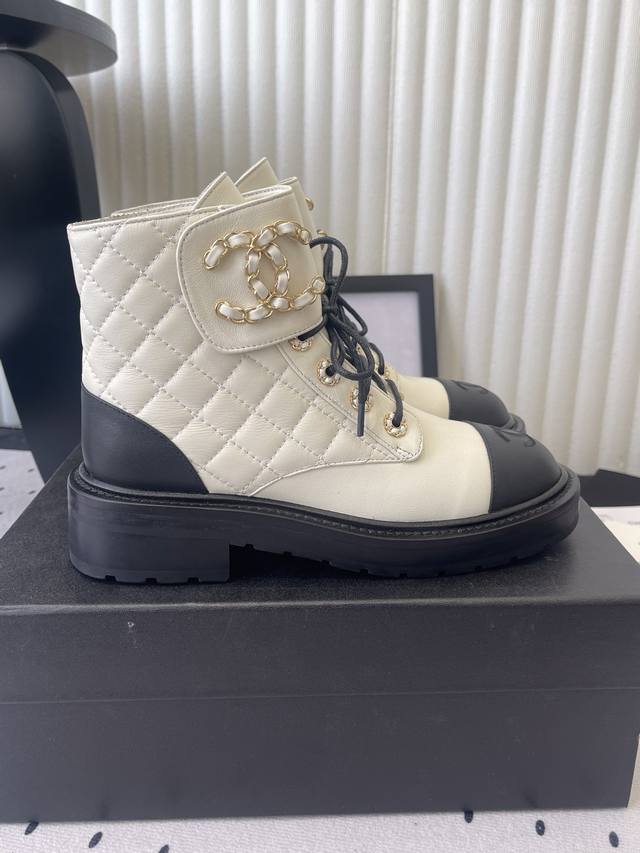 Chanel's most worthwhile motorcycle collection this season. The signature gold leather-trimmed logo perfectly enhances its understated luxury. It's incredibly difficult to get your hands on any of the colors in stores; they're practically sold out! A truly great buy. Size: 35-41 DDD