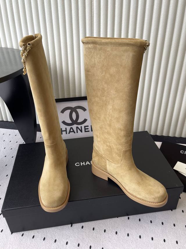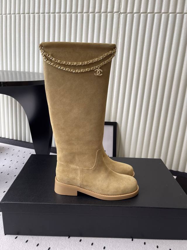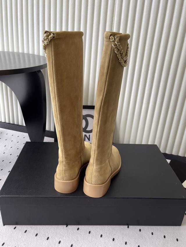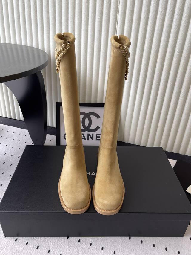 Chanel's new autumn and winter chain boots, the top version, cleverly combines the iconic double C element with the lucky four-leaf clover. The boots are simple and large in design. Made of cowhide and tendon, the inner padding is made of sheepskin. The sole is imported from Italy and the boot shaft is 19cm high and the barrel is 35cm. Size: 35-39, 40, 41, custom