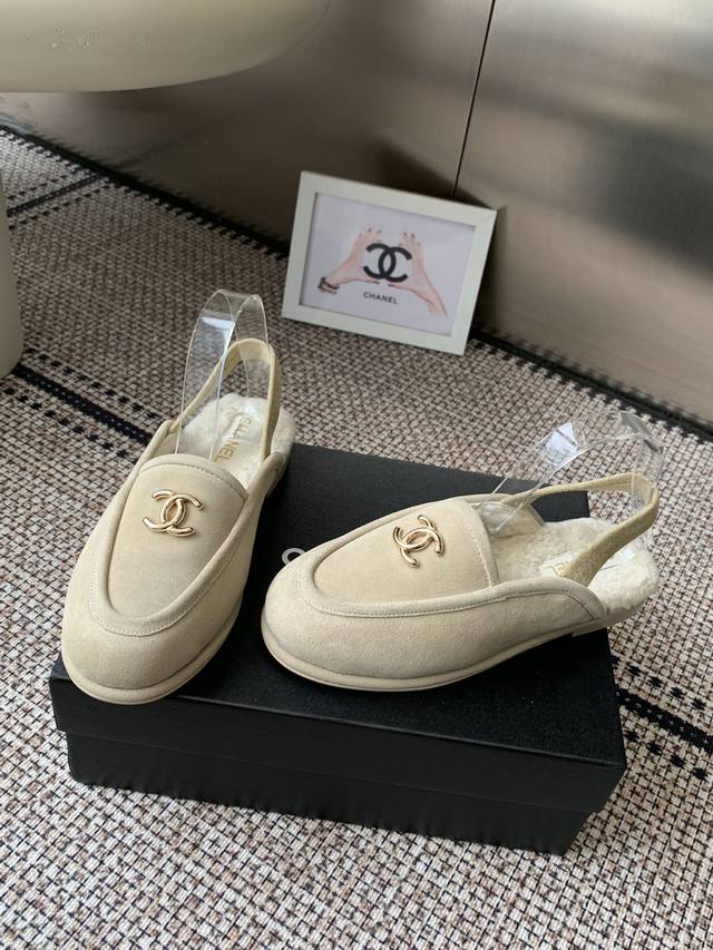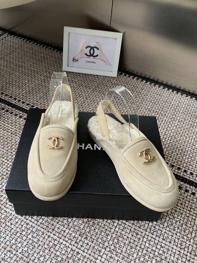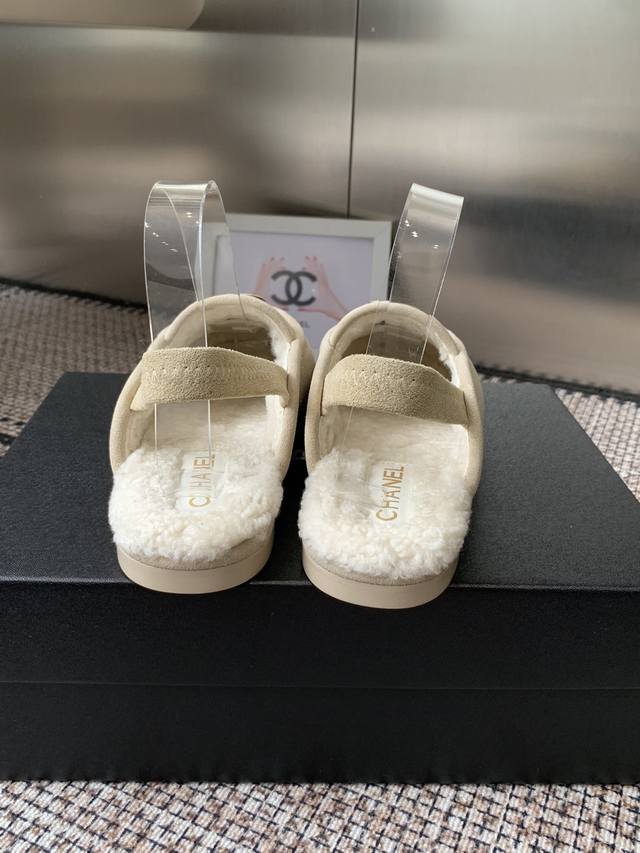 Chanel's new autumn and winter fur sandals are super comfortable and age-reducing, versatile and elegant. Original imported sheepskin and cow suede uppers, imported lambswool lining, and Italian leather outsoles. Sizes: 35-39, 40, 41, made to order.