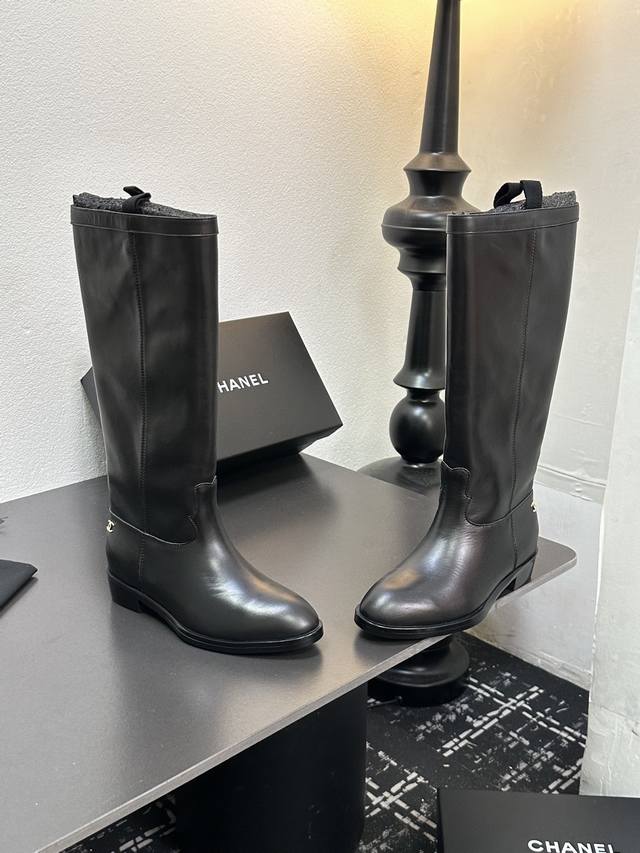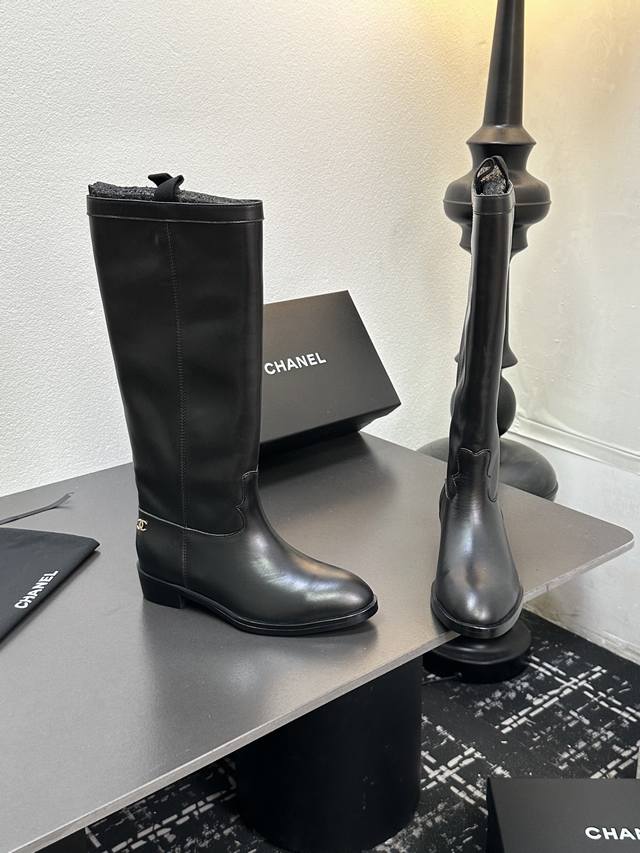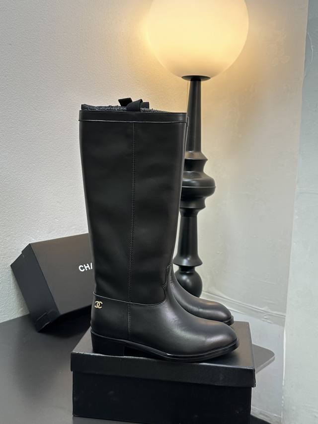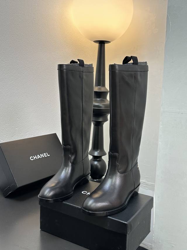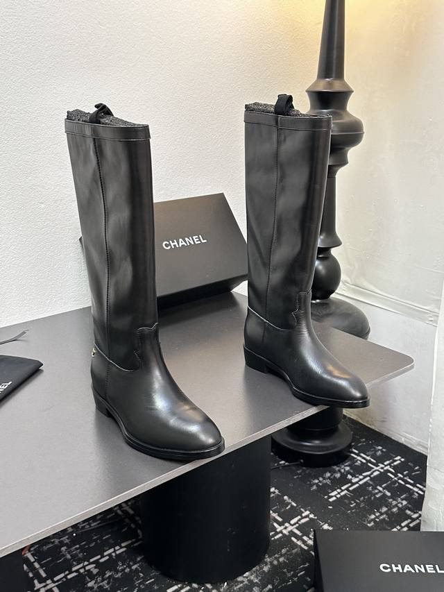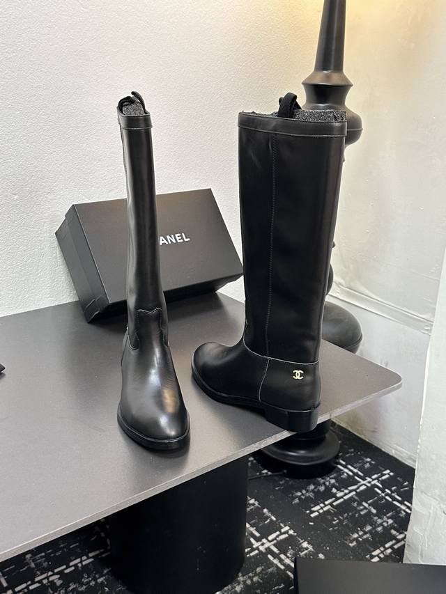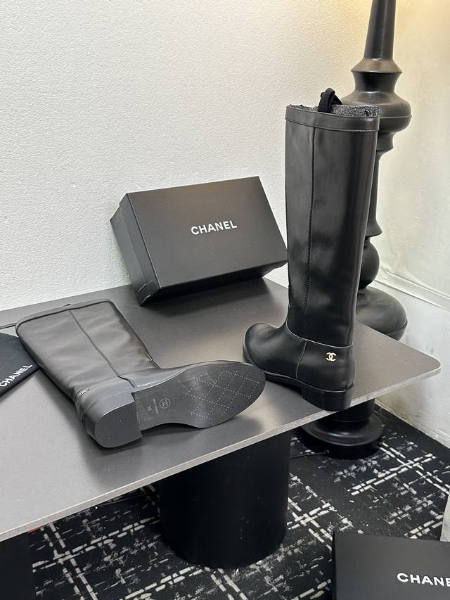 Chanel's new fall/winter slip-on boots, high boots, and knight boots. Super comfortable and versatile, the highest-end style on the market. Minimalist design, with more attention paid to the fabric and shape. Designed to be sleek and streamlined while also offering a tight fit. Lined with custom-dyed, ultra-soft, mixed-breed sheepskin. Rubber outsole. 36cm shaft height, 36.5cm calf measurement. Thick yet not heavy. Lightweight and easy to walk in. Highly recommended! Sizes: 35-39, 40.41, custom-made.