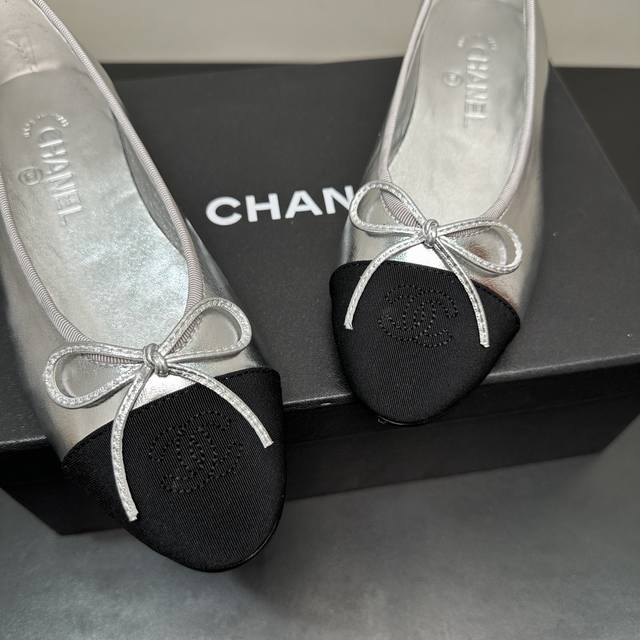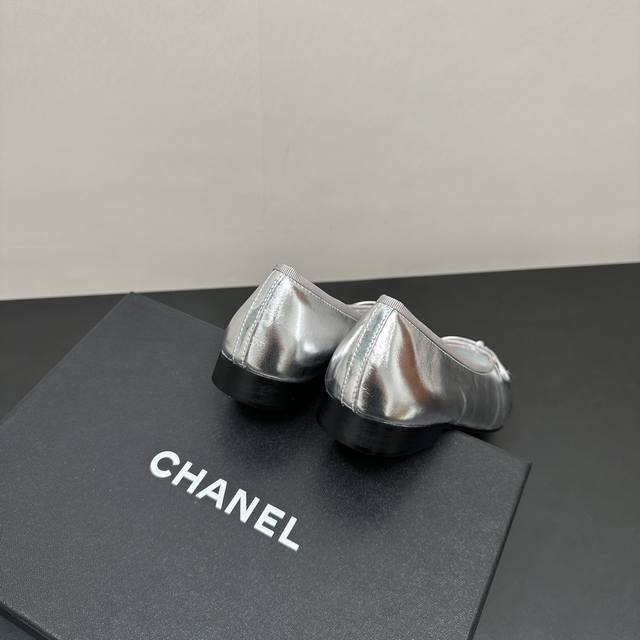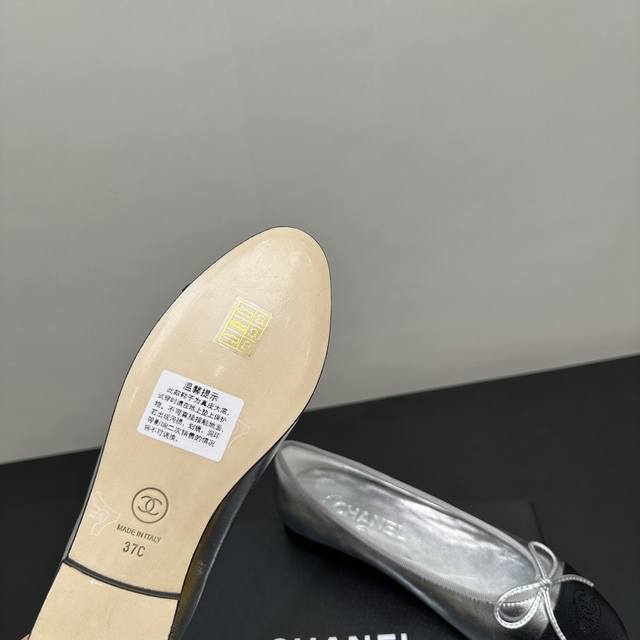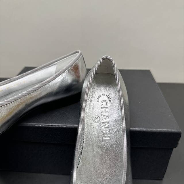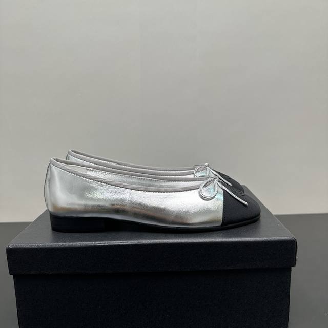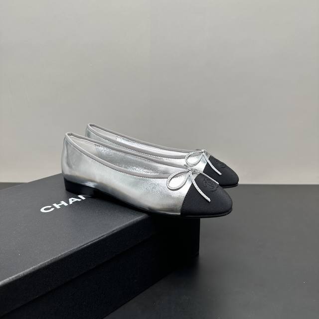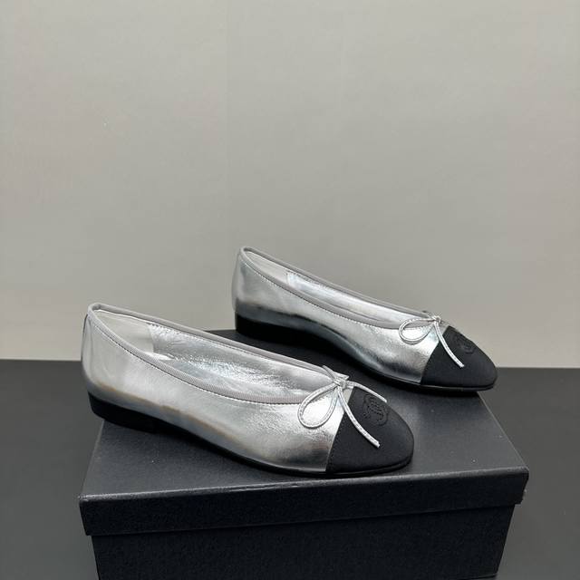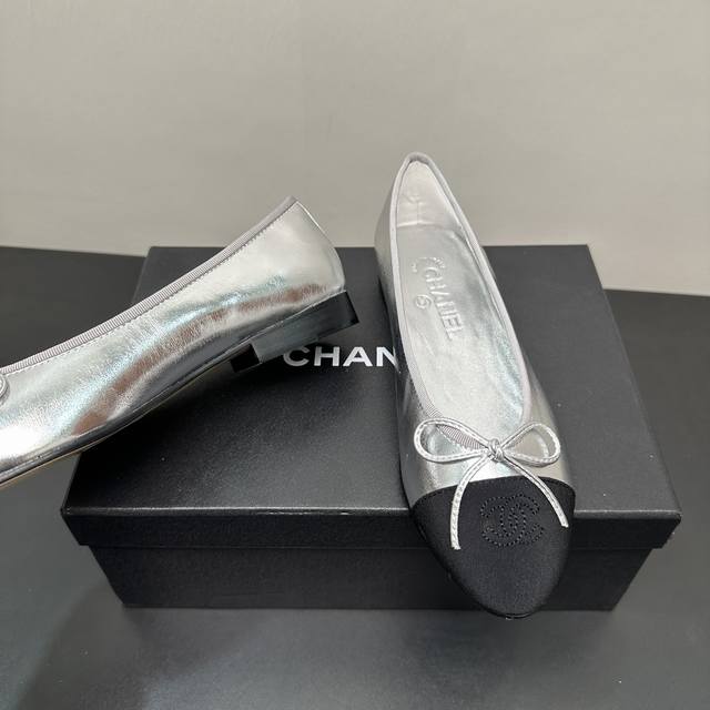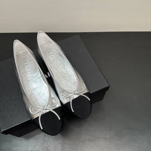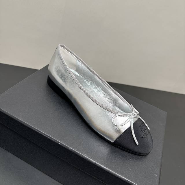 Chanel's top-quality silver ballet flats are a timeless classic, elegant and refined. A staple worn by celebrities and influencers, these shoes are a timeless, timeless replica of the original. Upper: imported mixed-breed sheepskin lining. Sizes 35-39, 34, 40, 41, 42, 43. Made to order, no returns or exchanges.