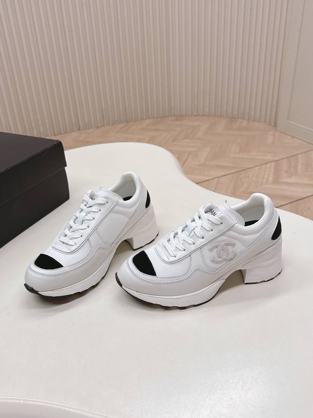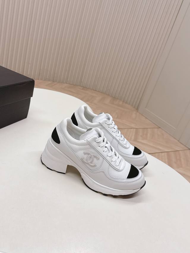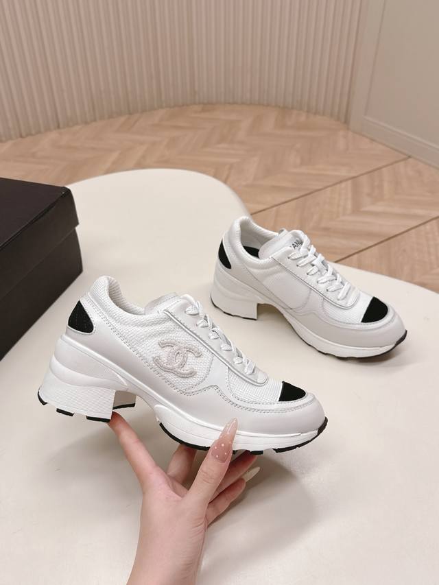 Chanl Chanel 25K Fall/Winter New High-Heeled Color-Blocked Casual Sneakers - Oddly Cute and Ugly, Sold Out in Department Stores, Featured by Major Bloggers and Social Media. This season's new style is a must-buy! They look elegant and lively on the feet, incredibly beautiful, with a casual sporty style that's both chic and natural, embodying Chanel's fashionable femininity. The overall customization made all other sports shoes on the market outdated. This series is now available! Features include: Custom-made sheepskin upper, custom mesh lining, breathable mesh lining, original custom-molded TPU outsole, original full-set mold, women's sizes 35-40, size 40 custom-made.