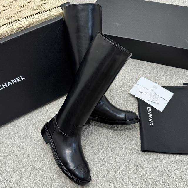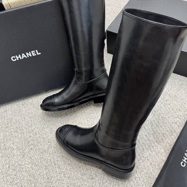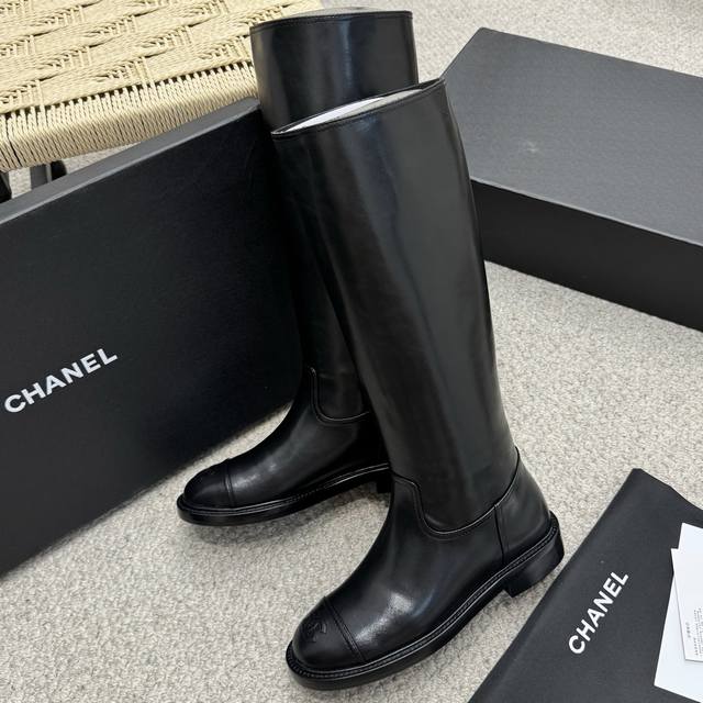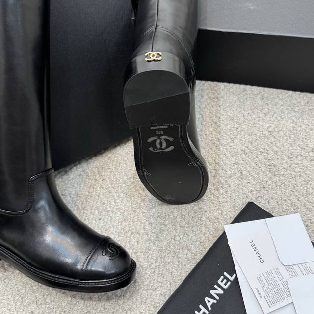 Classic Chanel Double C Rider Boots. These boots are versatile and can be paired with any style, whether sporty, casual, or formal. The boot shaft and last are quite spacious for added comfort. The cowhide boot shaft is structured enough to make your legs look straight without being stiff. The diamond-quilted stitching on the toe and the embossed double C logo on the side give them a very understated look. They feel like boots you can wear for many years. Highly recommended. Custom imported cowhide, custom mixed lambskin lining, Italian genuine leather outsole. Heel height: 3.5cm. Size: 35-40.