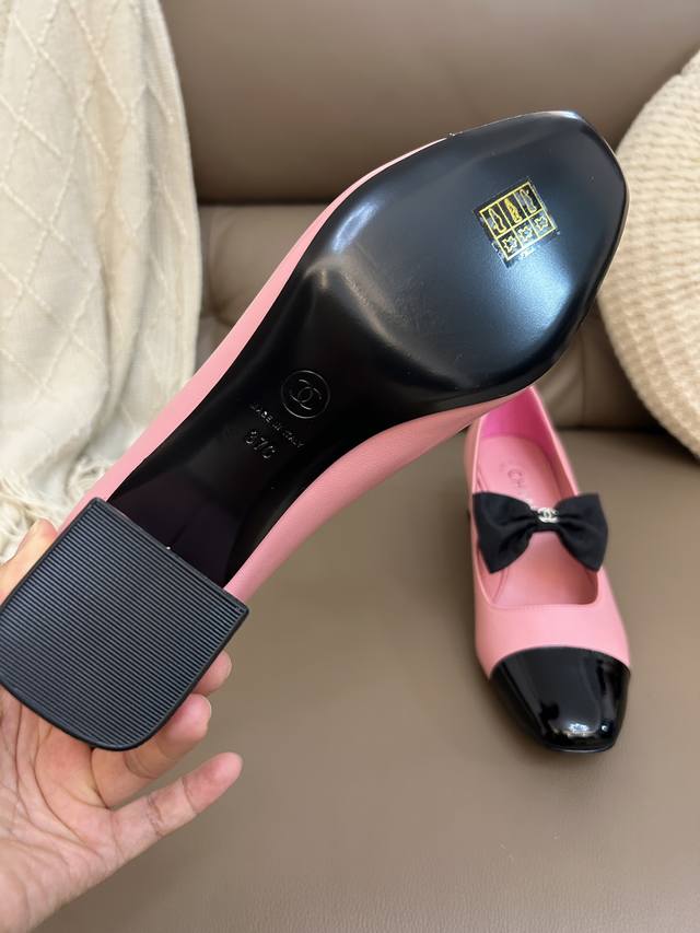 Customized, non-refundable/non-exchangeable DDD Early Autumn New Chanel 25B Mary Jane Shoes with Bow DDD Classic Double C Buckle Chunky Heel Ballet Flats DDD Classic Double C Bow, Chanel's high-end feel is always impressive. The style looks simple, but it inexplicably looks sophisticated on the feet. Absolutely youthful. 5cm mid-high heel, comfortable, easy to wear, and makes legs look longer DDD Upper: Sheepskin patent leather DDD Insole: Sheepskin DDD Heel height: DDD Sole: Italian genuine leather outsole DDD Sizes: 35-39 Customized, non-refundable/non-exchangeable DDD
