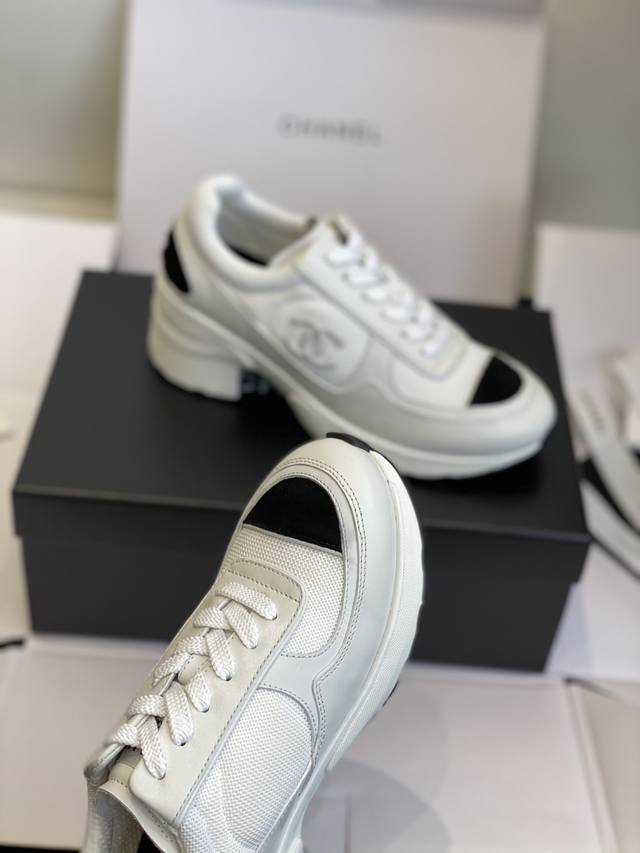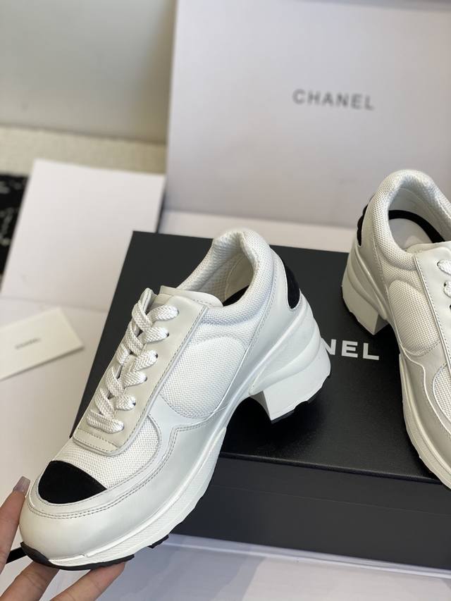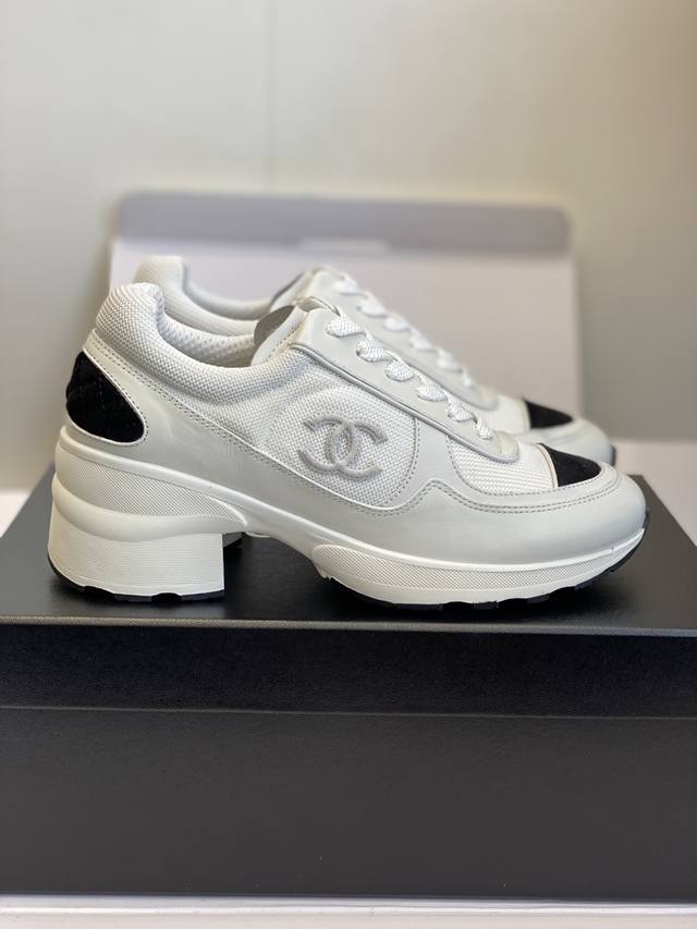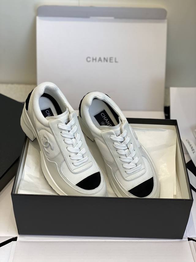Dongguan-level official website synchronized box packaging DDD Chanel 25K black and white panda colorway chunky heeled sneakers DDD Original purchase, developed and manufactured. Another super hot-selling item from Chanel boutiques, a favorite of internet celebrities and bloggers, receiving countless praises on social media. Super popular, high-quality, breathable, perfect for spring and summer. Seeing this always evokes a girl's inner desire for fashion. Latest suede material, classic black and white color scheme, very stylish on the feet, easy to care for DDD Material: Original custom imported top layer cowhide lining: Custom imported breathable mesh lining sole: Original molded anti-slip rubber material DDD Heel height: 4Cm DDD Size: 35-40 Size 40 is custom-made and non-refundable DDD