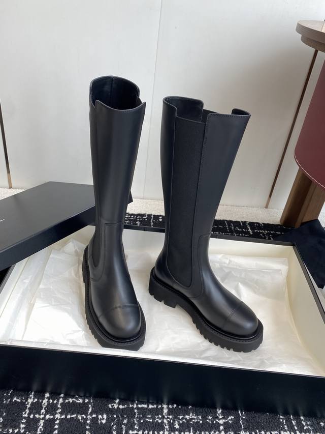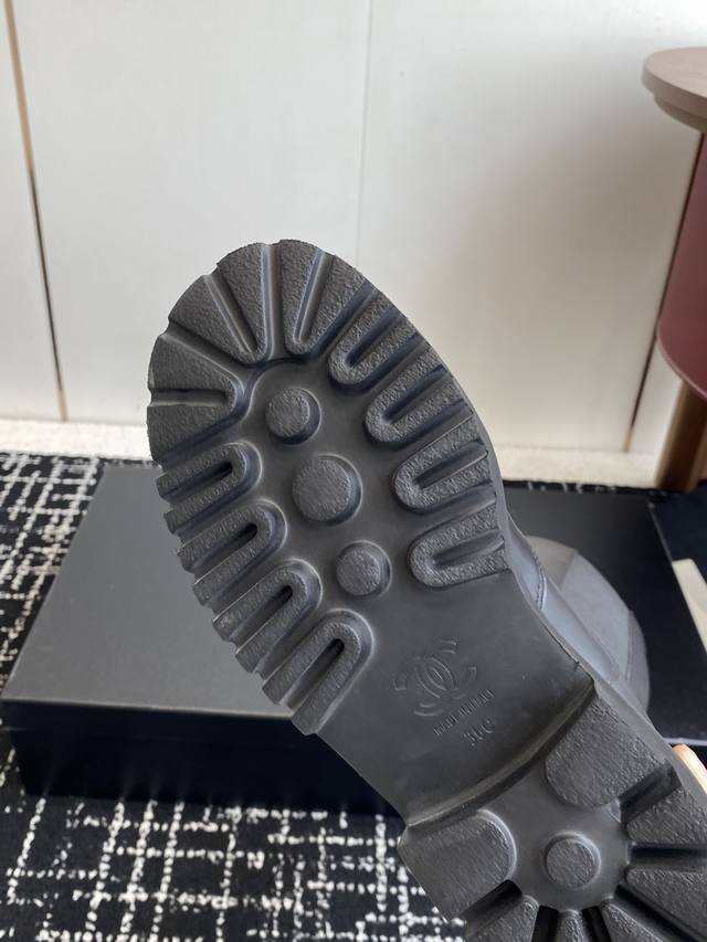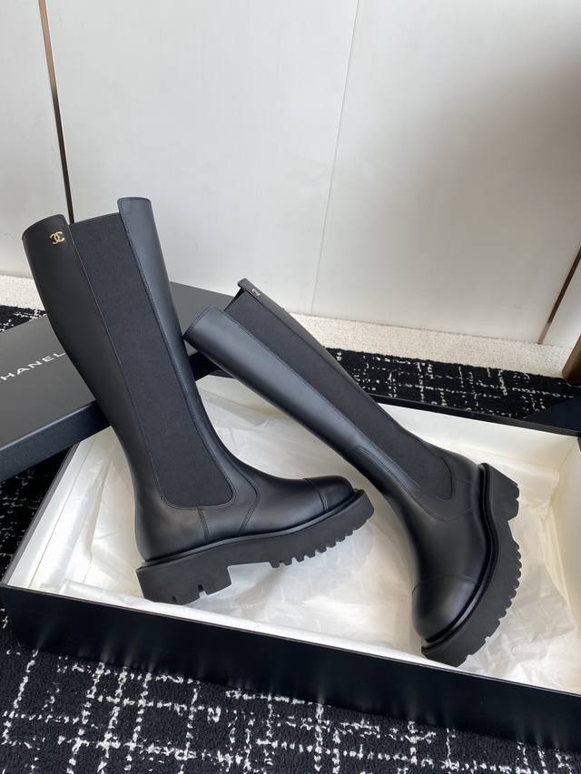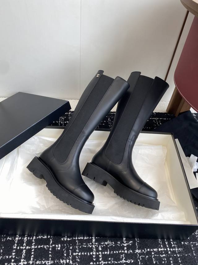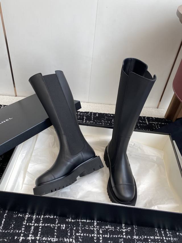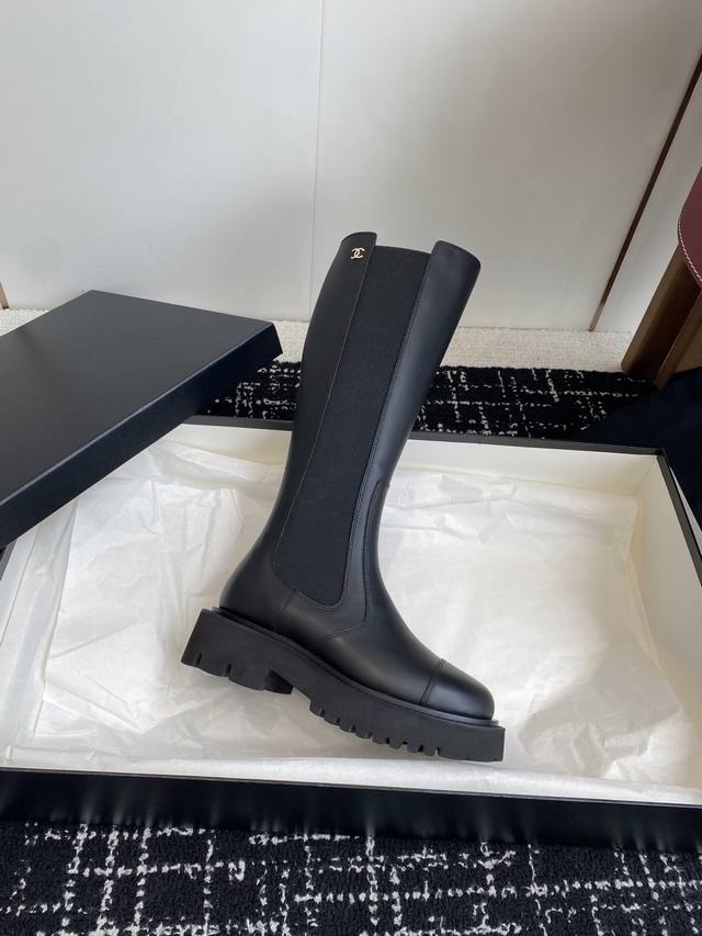 Dongguan-made high-quality ankle boots, 730cm high boots, official website synchronized box packaging. Chanel 25K new Chelsea boots, ankle boots, riding boots. Autumn/winter runway style, flattering to the legs, versatile, easy for any girl to wear. Imported calfskin upper, sheepskin lining, insole, original mold, wear-resistant foam sole. Size: 35-40. Size 40 is custom-made and non-refundable.