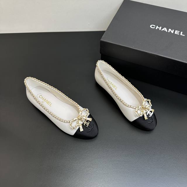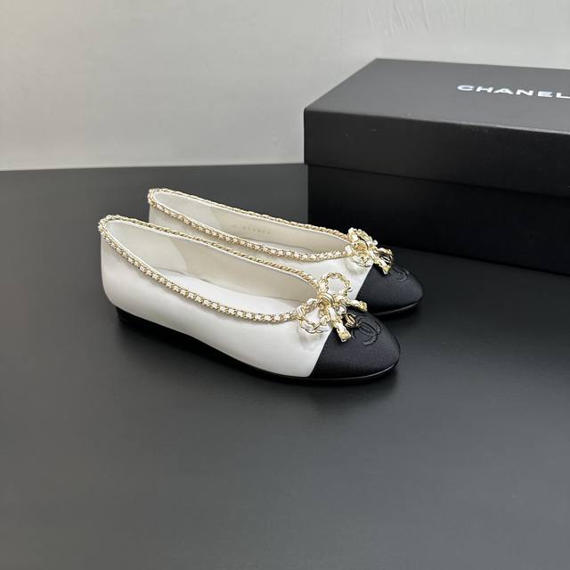 Early Fall New Chanel 25B Chain Bow Ballerina Double C Flat Shoes