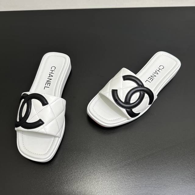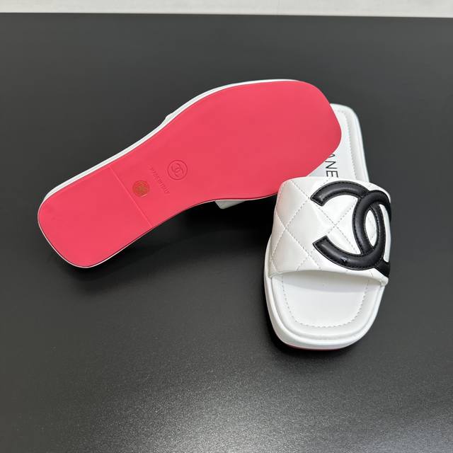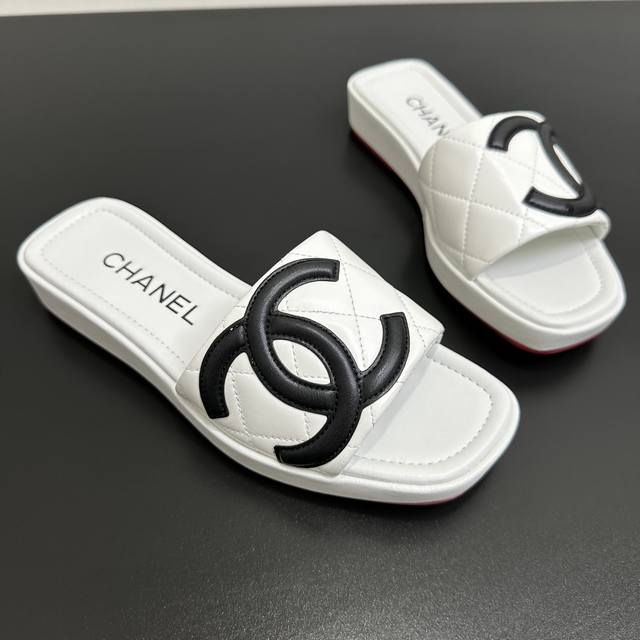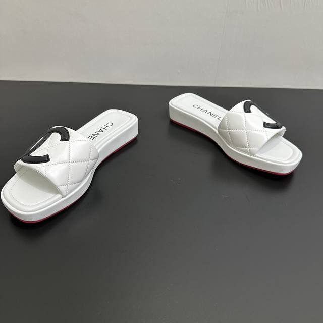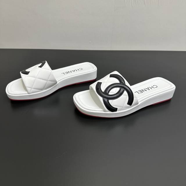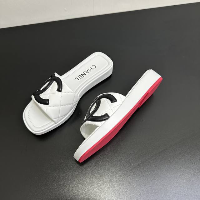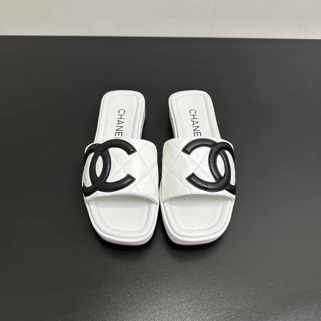 Chanel 25 A new summer style, Kangpeng panda color thick-soled diamond-patterned slippers with red soles