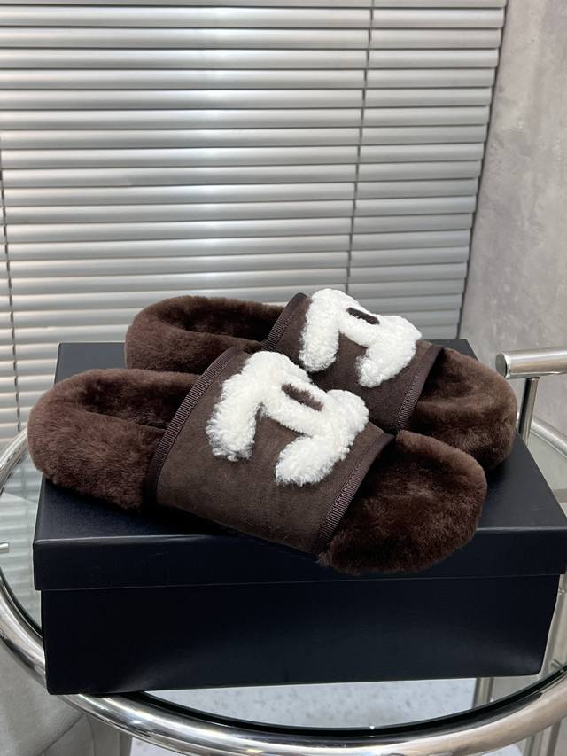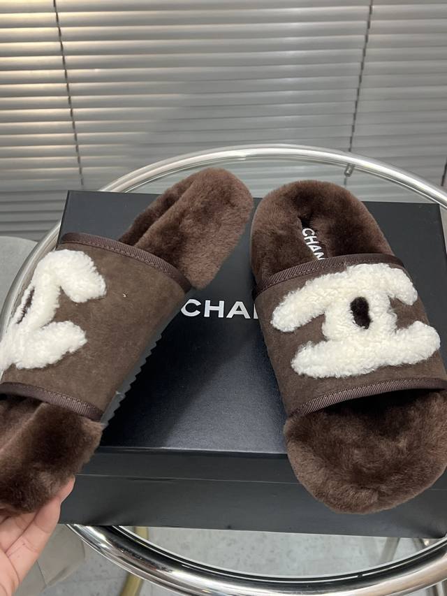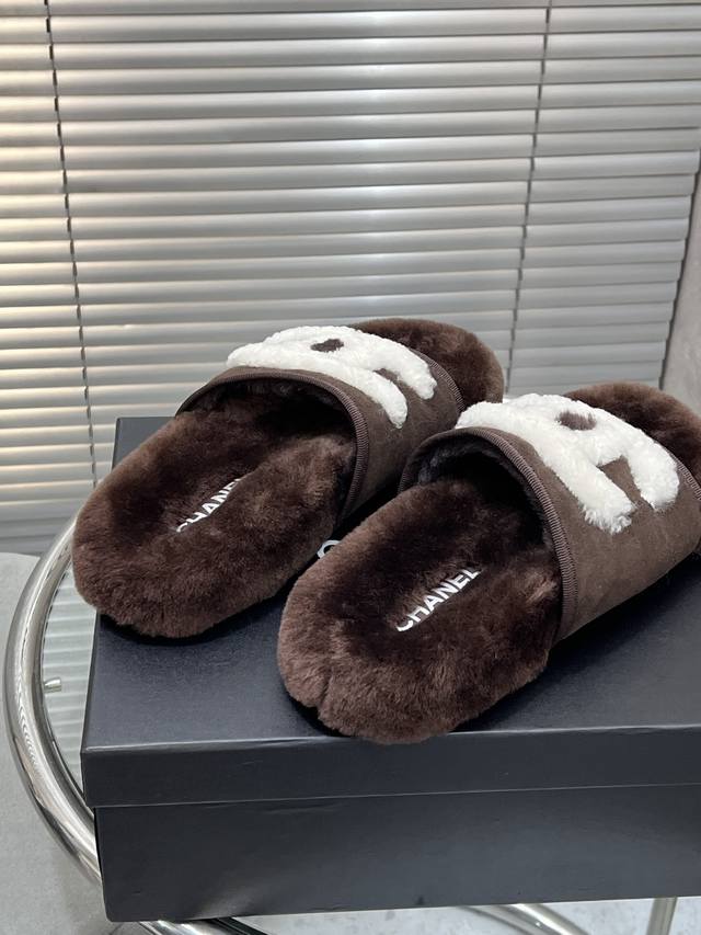 Chanel Xiaoxiang Autumn and Winter Letter Wool Slippers