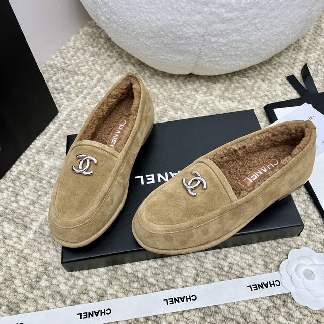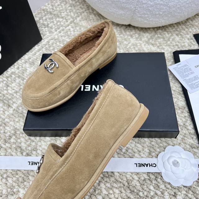 Factory direct Chanel 24 Teddy Sheepskin Loafers. Another super hot-selling item from Chanel boutiques, a favorite of online influencers and fashionistas, receiving countless praises on social media. Highly popular, breathable, and perfect for spring and summer. This style always evokes a girl's desire for fashion. Made with the latest suede material, classic black and white color scheme, incredibly stylish and easy to care for. Material: Original custom imported top-grain cowhide. Lining: Custom warm lambskin. Sole: Original molded genuine leather outsole. Sole thickness: 1.5cm. Size: #35-41. Sizes 40 and 41 are custom-made and non-refundable.