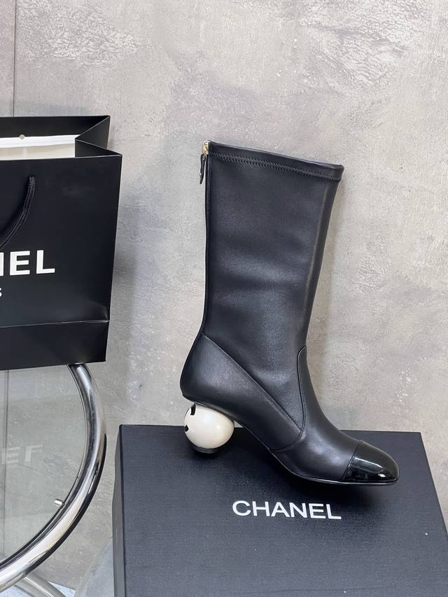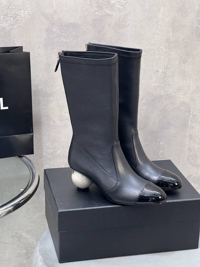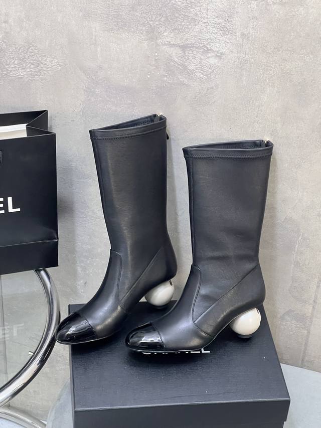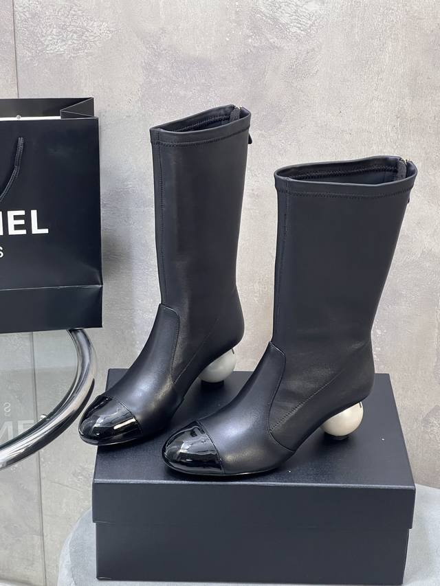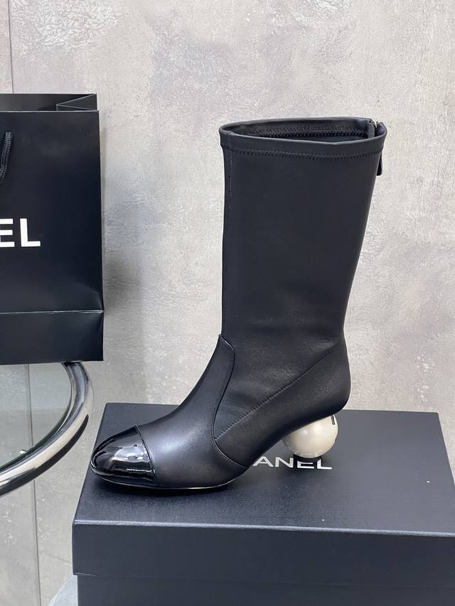 Factory Direct DDD Chanel Autumn/Winter New Style Large Pearl Elastic Mid-Calf Boots for Women DDD Highlights Giant Pearl DDD Custom Lambskin with Suede and Patent Leather DDD Lambskin Lining and Insole DDD Original Mold Pearl Genuine Leather Outsole DDD Heel Height: 5.5cm DDD Size: 35-41 40.41 Custom Made DDD