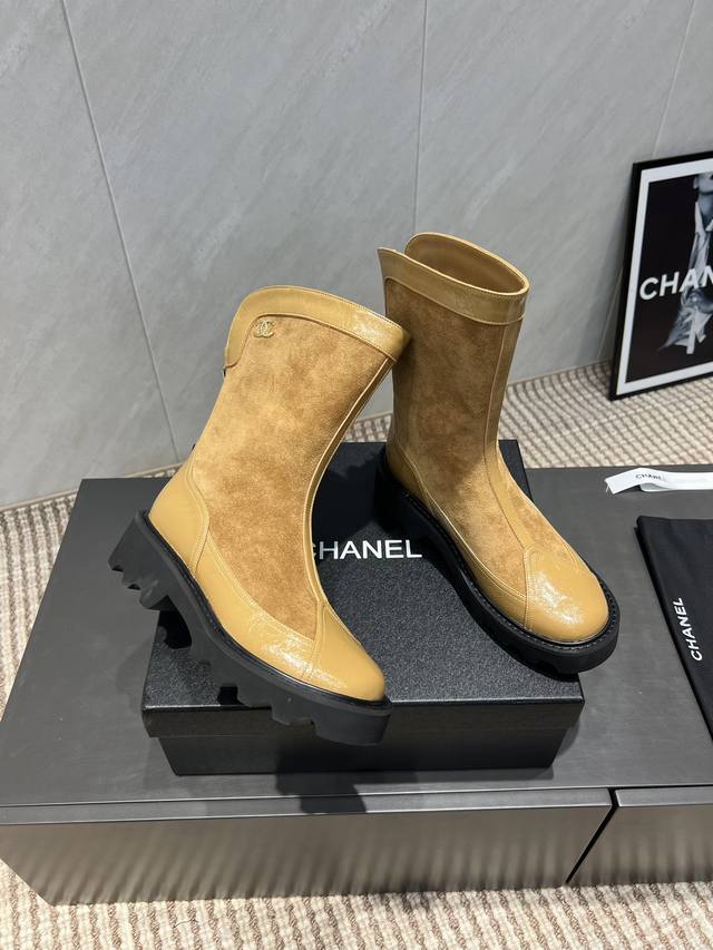Factory Direct: Exclusive Top-Tier Version DDD Chanel 25Vs Autumn Latest Boots Series DDD Round Toe Thick-Soled Ankle Boots DDD Chanel's favorite simple yet irresistible style showcases a unique dressing style, freely mix and match to shine, keeping up with Chanel's fashion trends!! DDD Top-tier craftsmanship and perfect texture, every detail can be compared to the boutique, the best level of top-tier goods, can be freely exchanged for boutique items!! DDD Material: Original custom-made butter leather with suede color blocking DDD Lining : Original custom-made sheepskin DDD Insole: Original custom-made sheepskin DDD Outsole: Original molded foam combination sole DDD Heel Height: 4cm DDD Sizes: 35-39, 40, 41 are custom-made and non-refundable DDD Packaging: Original full packaging DDD Color: Updated synchronously with the official website DDD