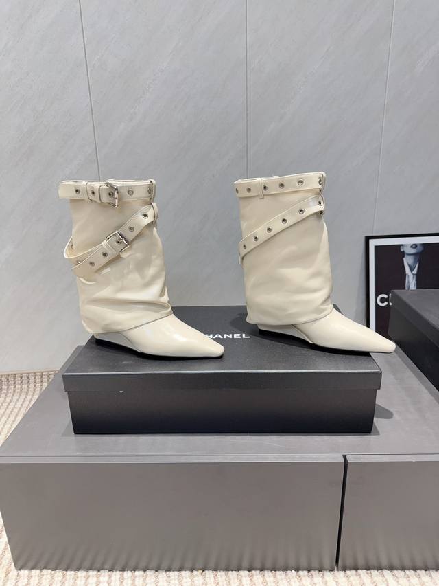 Factory Direct: Exclusive Top-Tier Version DDD Chanel 25Vs Autumn Latest Boots Series DDD Slip-on Wedge Ankle Boots DDD Chanel's favorite simple yet irresistible style showcases a unique dressing style, freely mix and match to shine, keeping up with Chanel's fashion trends!! DDD Top-tier craftsmanship and perfect texture, every detail can be compared to the boutique, the best level of top-tier goods, can be freely exchanged for boutique items!! DDD Material: Original custom-made butter leather DDD Lining: Original custom-made sheepskin DDD Insole: Original custom-made sheepskin DDD Outsole: Original custom-made genuine leather DDD Heel Height: 5cm DDD Sizes: 35-39, 40.41 Custom-made, no returns or exchanges DDD Packaging: Original full packaging DDD Color: Updated synchronously with the official website DDD