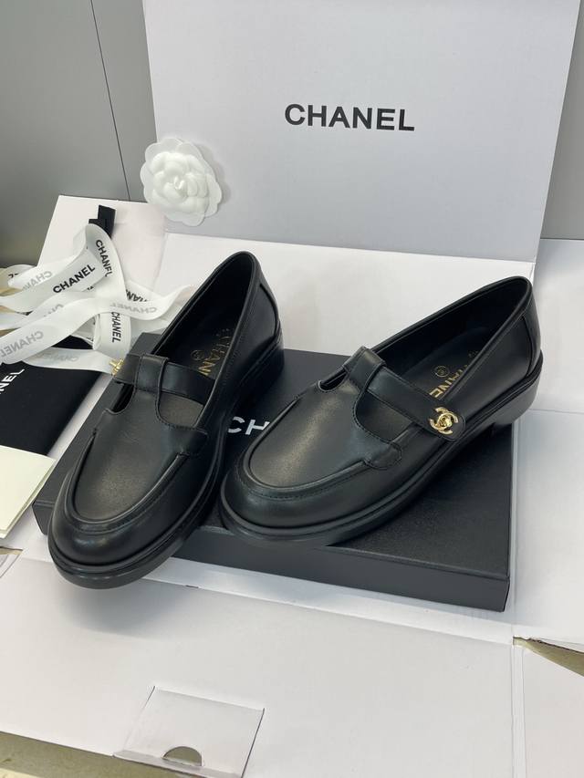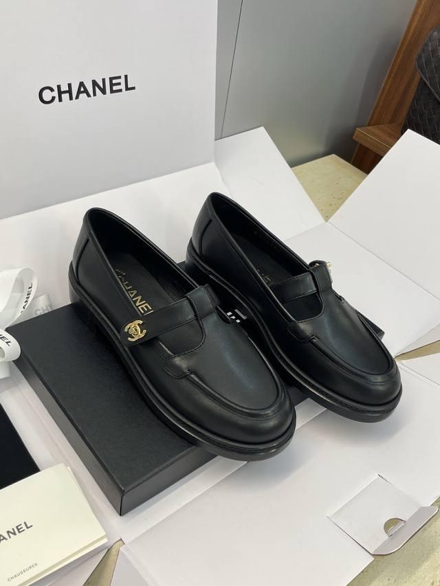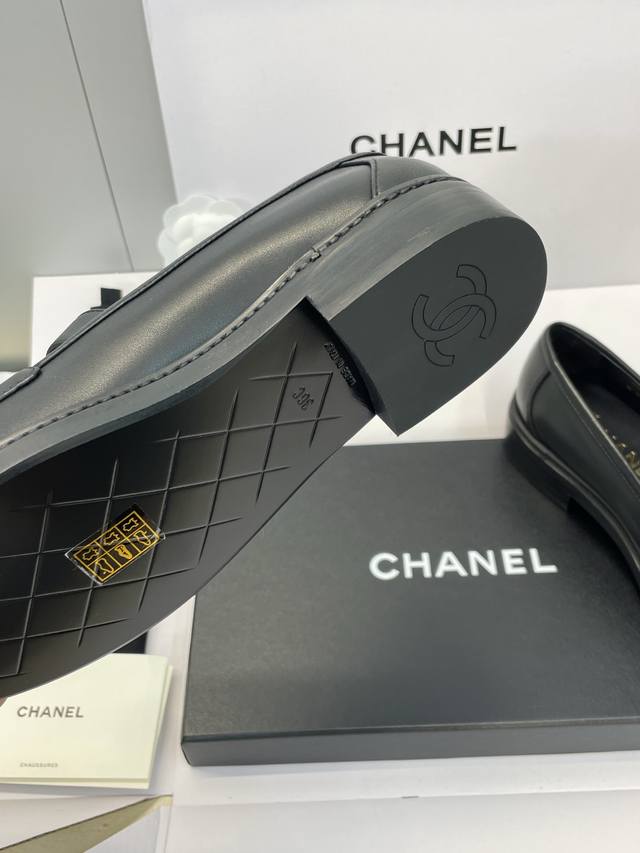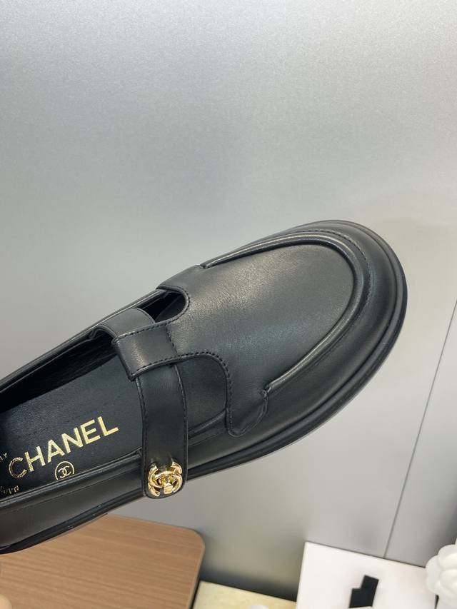 Factory direct price DDD Dongguan-made, high-quality Chanel 2025 Fall/Winter runway new platform loafers with Chanel logo, metal buckle, round toe, low heel. Material: Imported calfskin upper + mixed sheepskin lining + original molded metal buckle + Italian thickened genuine leather outsole. Size: 35-40. Size 40 is custom-made and non-refundable.
