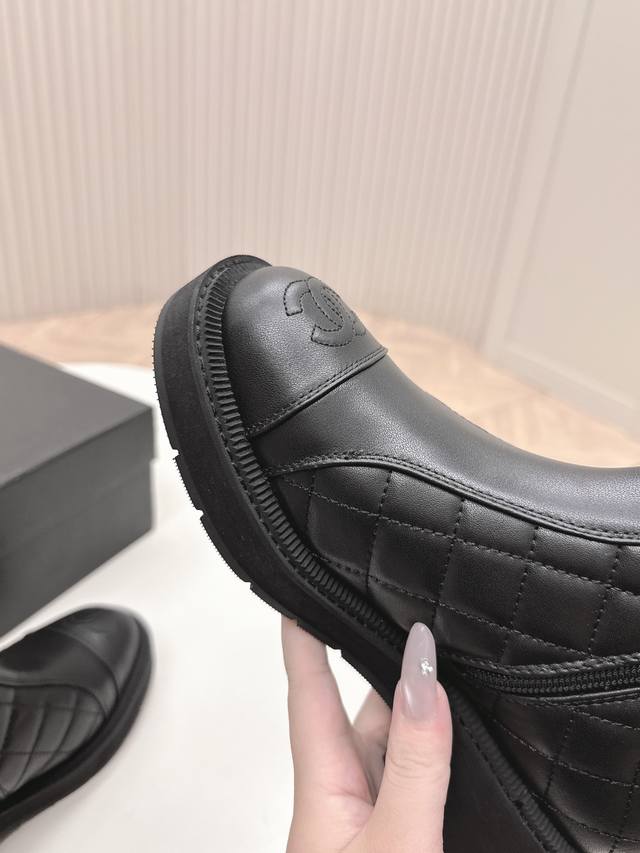 Factory direct replica of Chanel 2025 Fall/Winter new boots series: ankle boots, high boots, riding boots, and Martin boots. Classic upgraded with the brand logo, diamond-patterned chain detailing for a subtle yet recognizable touch. A classic Chanel design, effortlessly stylish and perfect for the fall/winter season. Simple, sophisticated, fashionable, and timeless