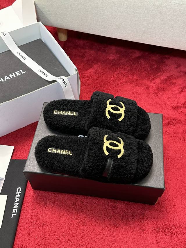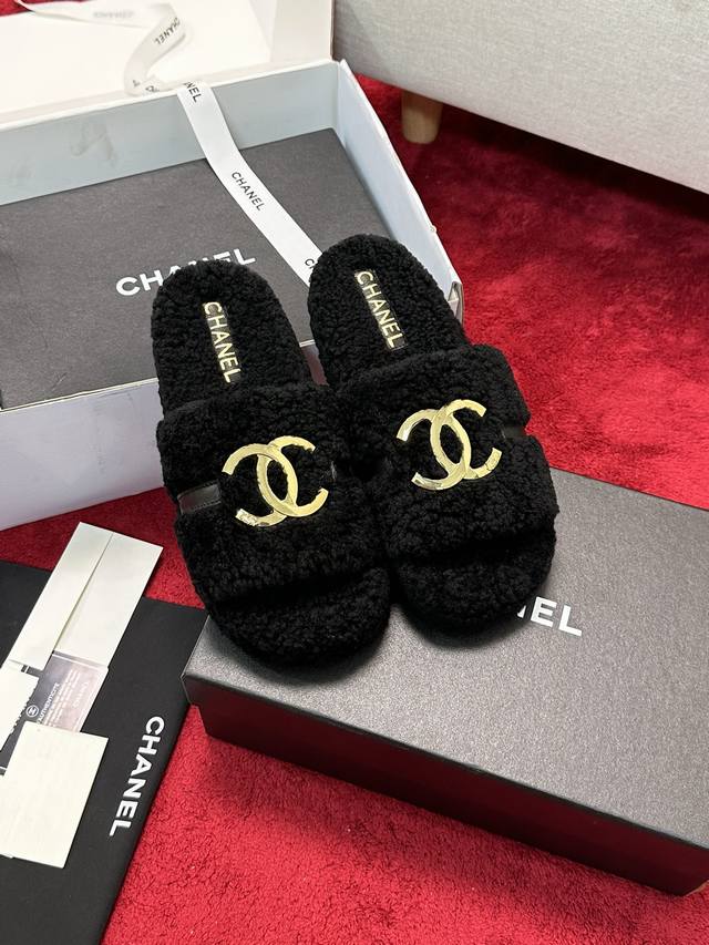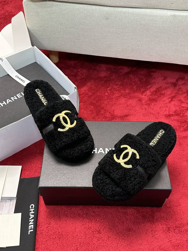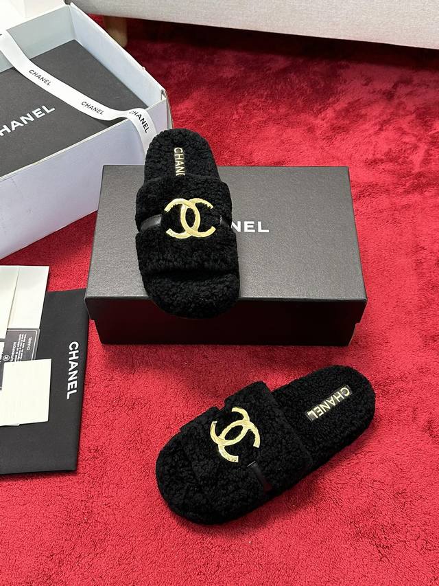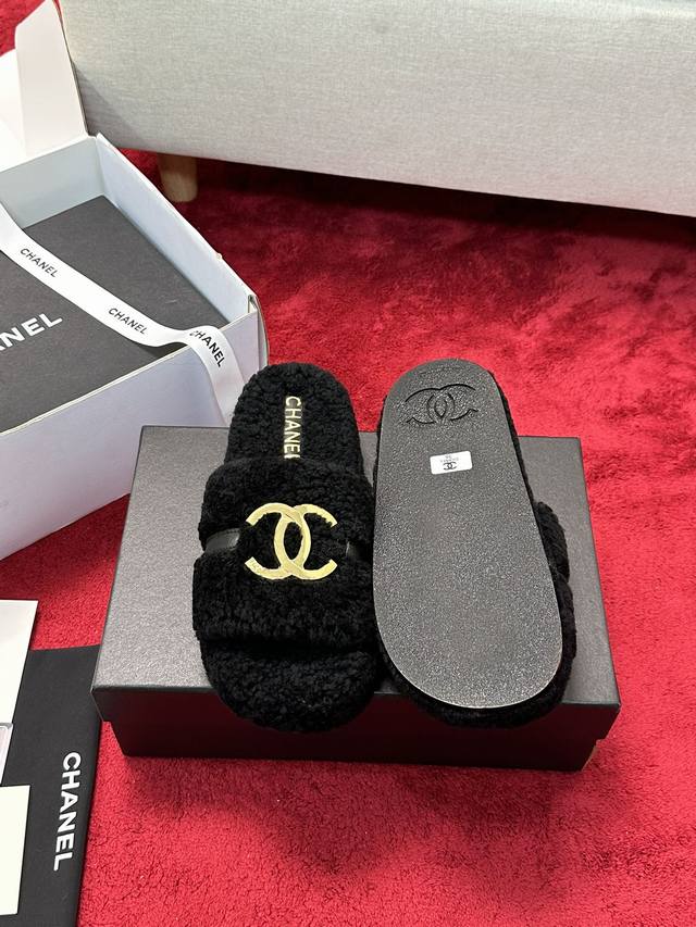 exclusive best-selling Chanel 24 latest furry slippers are now available! Extremely luxurious! Suitable for both outdoor and casual wear, high-quality craftsmanship, stylish and chic for autumn and winter, showcasing a unique visual aesthetic. Fabric: Pure sheepskin, one-piece lining, insole: wool, outsole: original molded sole, comfortable, durable, and resilient! Sizes: 35-39, 40, 41 (custom made). Packaging: Original full packaging
