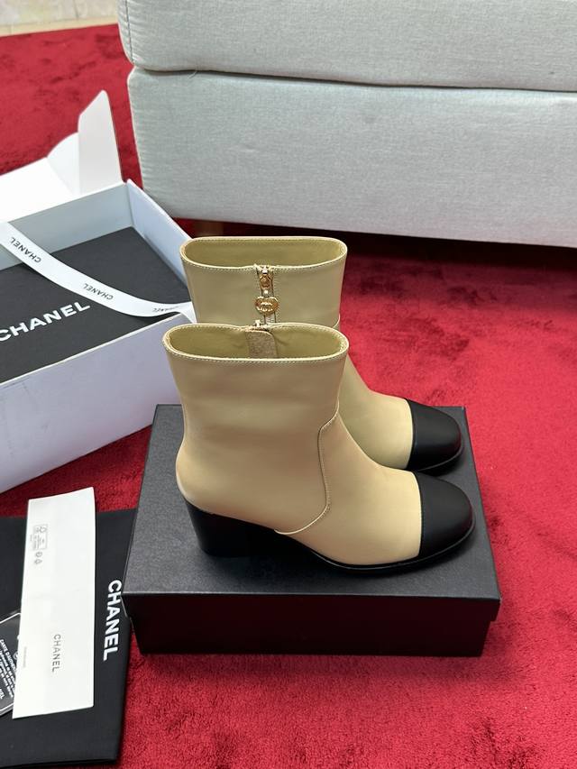 Factory direct top-tier version, same style as Chanel's official website. New Chanel ankle boots, simple and elegant, fashionable and versatile, comfortable to wear, made of imported top-grain cowhide, sheepskin lining, genuine leather outsole, 6.5cm heel height. Sizes: 35-39, 40, 41. Custom orders, no returns or exchanges.