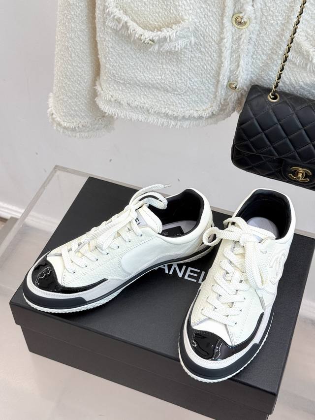 Factory Price: Chane* | Chanel 25K New Double C Casual Sneakers. These sneakers have become a fashionista's new favorite. If you pay close attention to the fashion world, you'll see them everywhere. So what's the allure of these shoes? These shoes retain Chanel's classic Double C design, blending the sleekness of a sneaker with the comfort of a sneaker. Their simple, sleek, rounded toe not only flatters the foot, but also provides ample toe room, eliminating the need for constriction. Their black and white color scheme is a key feature. A classic black and white combination never goes out of style. The freshness of white complements the soothing elegance of black. Whether paired with jeans, sweatpants, or a mini skirt, they effortlessly create a stylish look that easily adapts to any outfit.