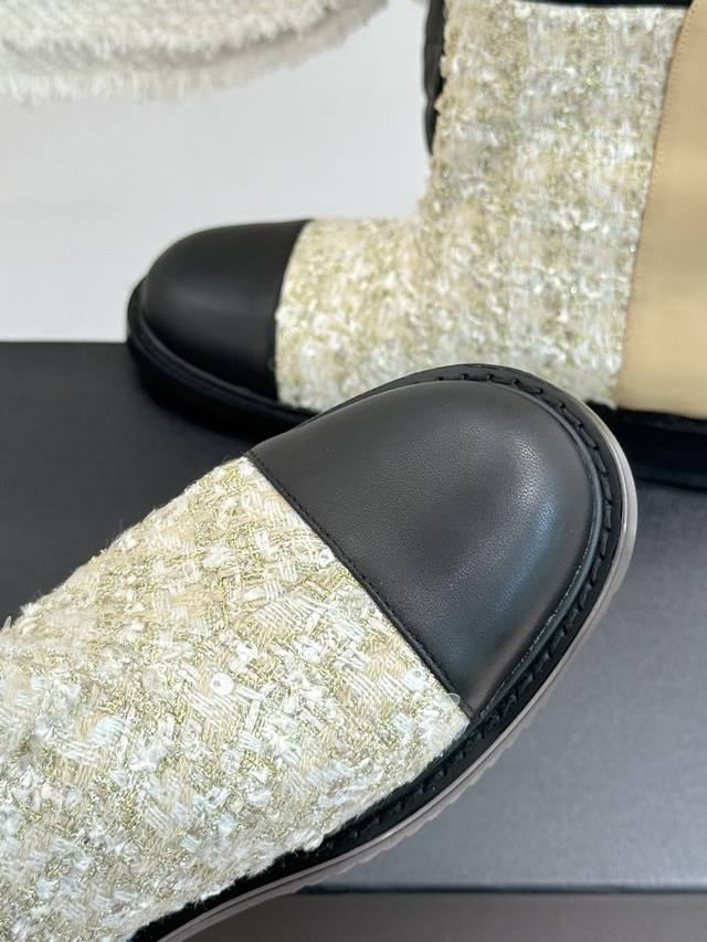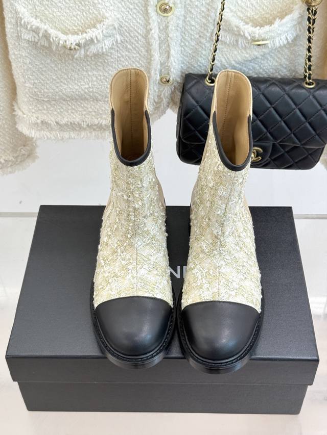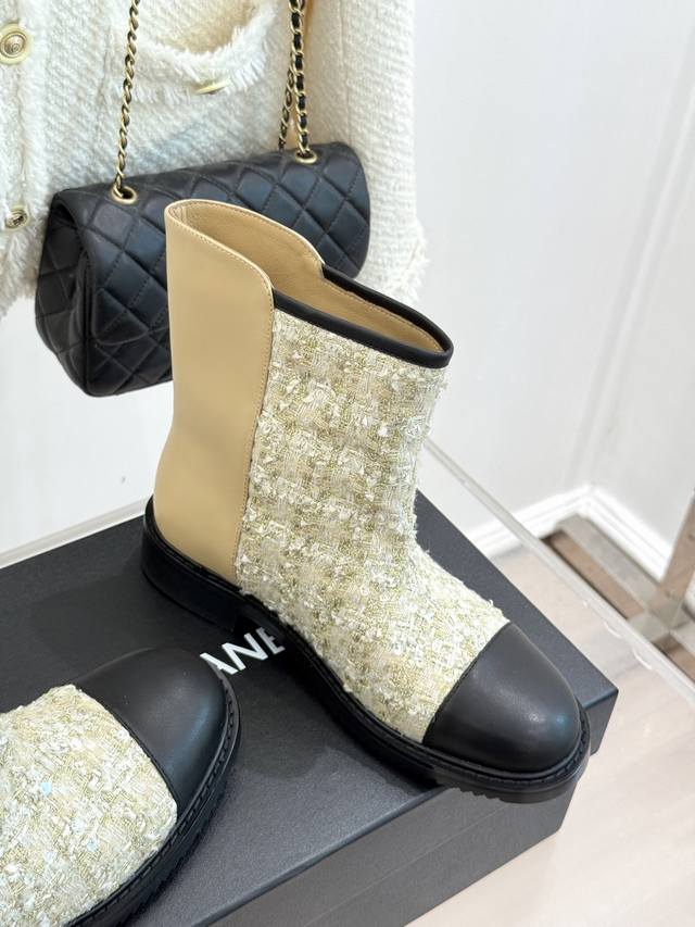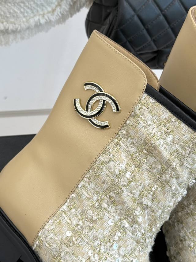 Factory Price: Chane* | Chanel 25K New Fall/Winter Double C Colorblock Sequined Ankle Boots. When Chanel's iconic Double C branding meets dazzling sequins, these colorblocked boots become the ultimate fall/winter wardrobe essentials, bringing elegance and sparkle to every moment. Contrasting color schemes break the monotony, creating a layered aesthetic. Whether the sharp contrast of classic black and white or the gentle juxtaposition of pastel colors, they effortlessly complement coats, leather skirts, or jeans. From commuting to a date, they seamlessly transition from style to style. The sequins adorning the upper create a subtle shimmer, creating an understated yet eye-catching look. Paired with the metal Double C logo on the side and toe, they instantly highlight the brand's signature style, making every step feel like stepping into the stars. Wearing these autumn/winter boots not only protects against the chill, but also elevates basic outfits, making you the center of attention.