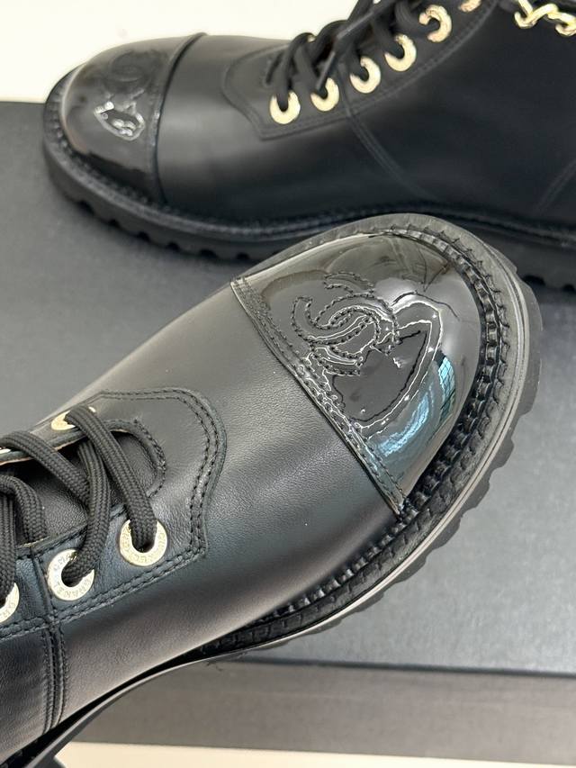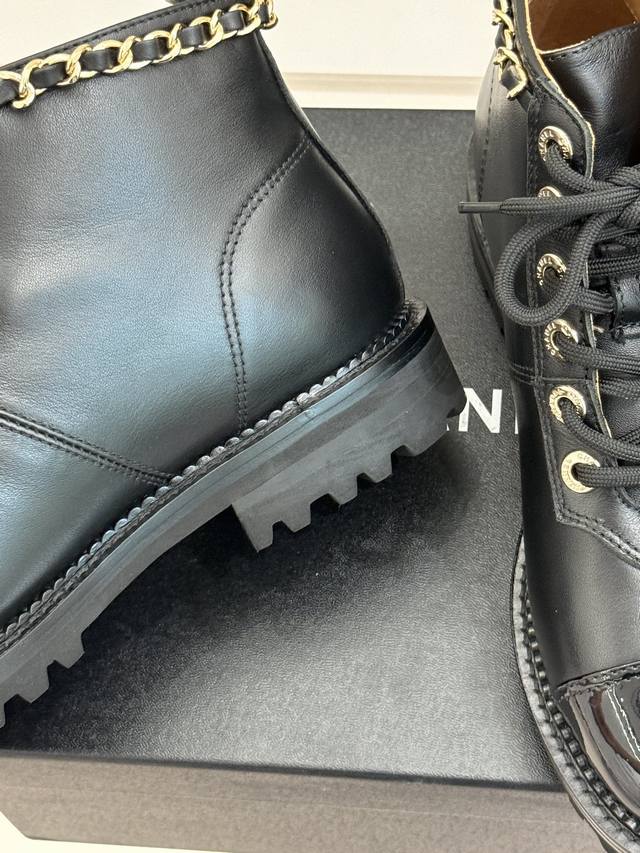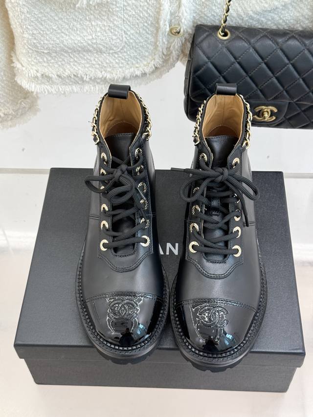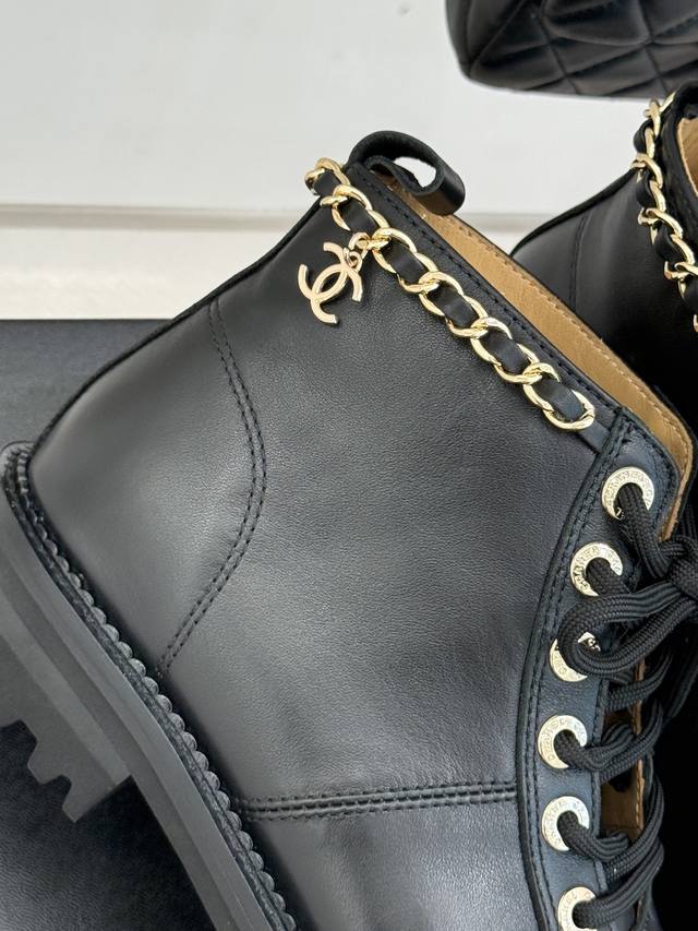 Chanel 2025 Early Autumn New Style Chunky Heel Color Block Chain Ankle Boots Upp