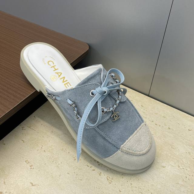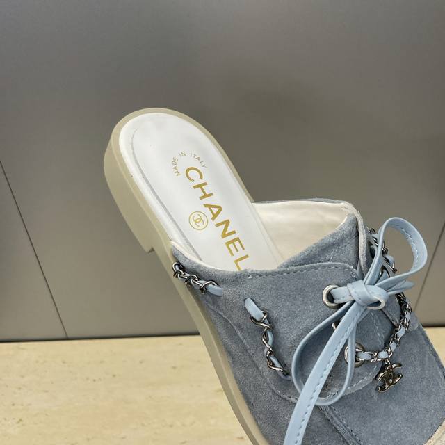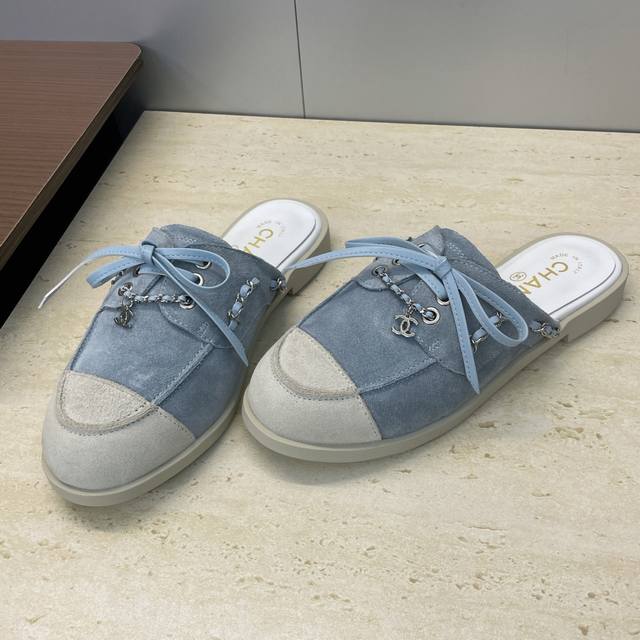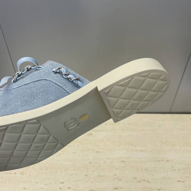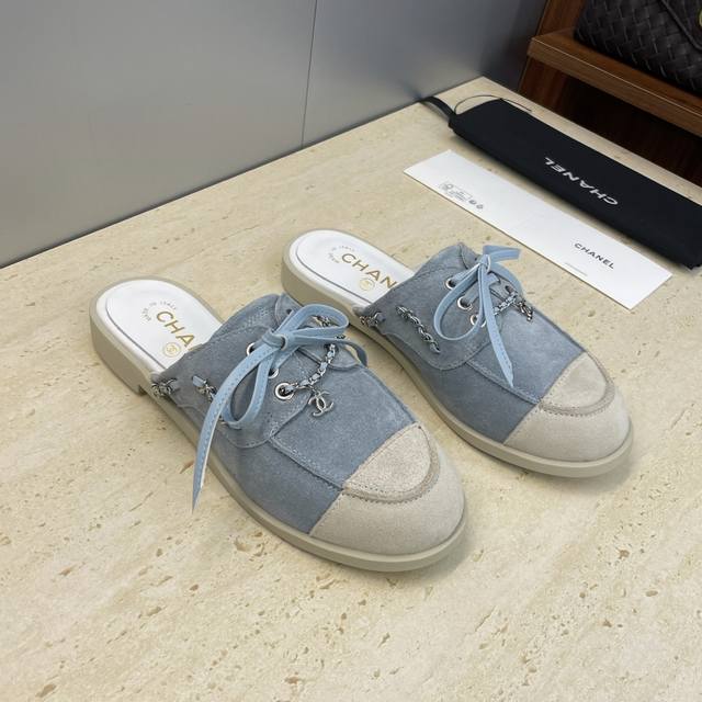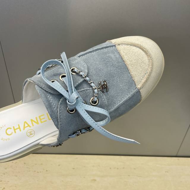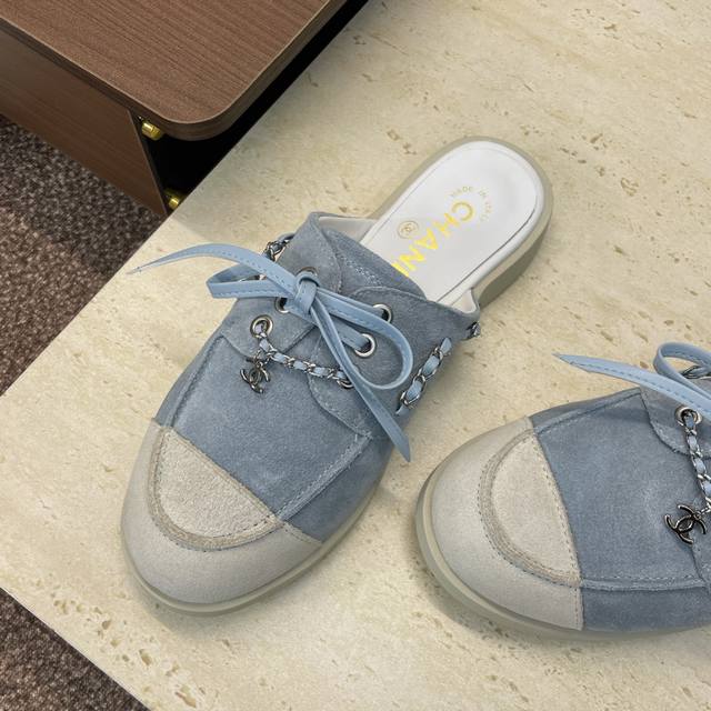 Factory price Ddd Chanel 2025 Early Autumn Runway New Punk Style Flat Lace-up Women's Shoes with Chanel Logo Hardware Chain Buckle Round Toe Color Block Mule Sandals Ddd Material: Imported calfskin upper, imported suede + mixed sheepskin lining + original mold hardware buckle + original mold TPU outsole Ddd Size: 35-41 40.41 Custom orders are non-refundable DDD